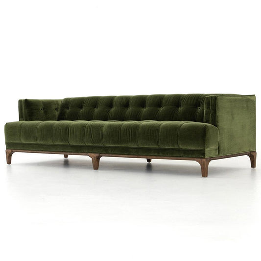 Allen Mid Century Green Velvet Brown Wood Frame Button Tufted Sofa