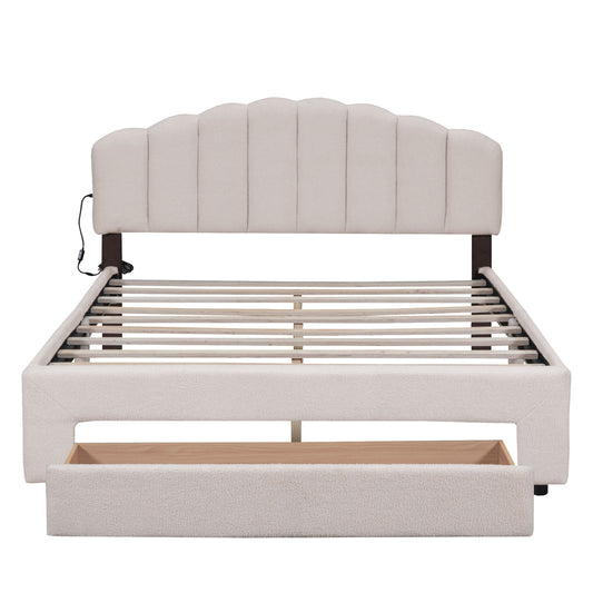 Upholstered Platform Bed With 2 Drawers And 2 Sets Of USB Ports On Each Side, Linen Fabric