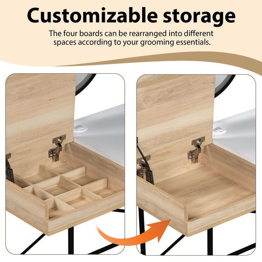 Makeup Vanity Desk With 3-Mode Lighted Mirror & Wireless Charging Station, Vanity Table With Drawer & 3 Open Shelves For Ample Storage Space, Dressing Table For Bedroom