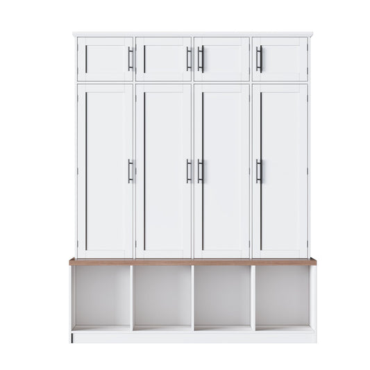 Farmhouse Hall Tree With 4 Hidden Hanging Hooks And 8 Doors