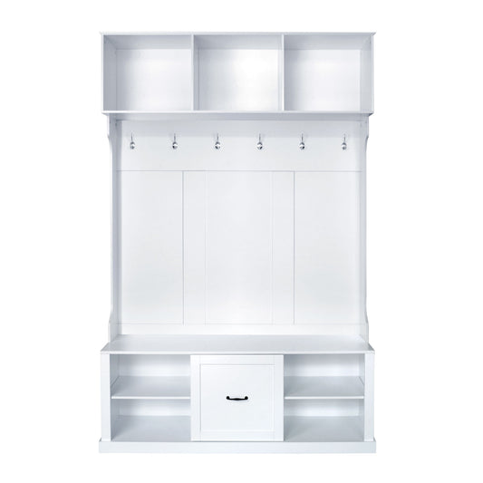 Modern Wide Hall Tree With Coat Rack, 3 Shelves And Drawers, 3 Sturdy Hooks