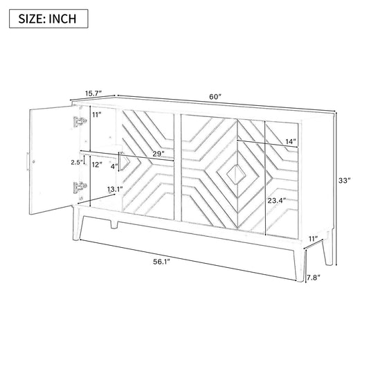 4 Door Sideboard Storage Cabinet For Living Room And Dining Room, 2 Large Cabinets With Gold Handles And Adjustable Shelf - Black