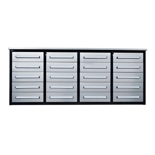 Garage Storage Cabinets With Workbench (With 20 Drawers) - Silver