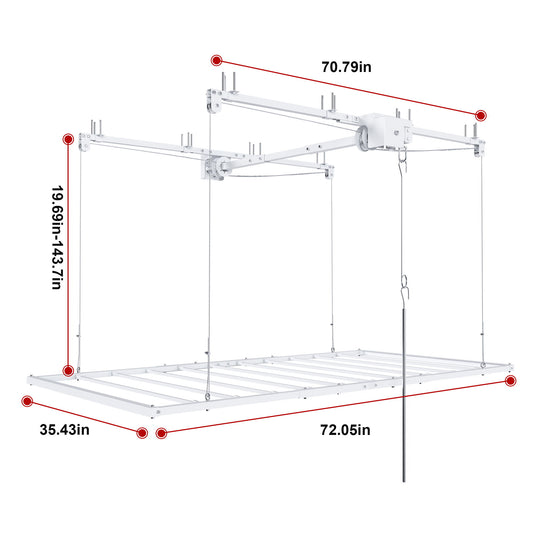 Overhead Garage Storage Rack 3 X 6 Ft For High Ceilings, With Safety Lock - White