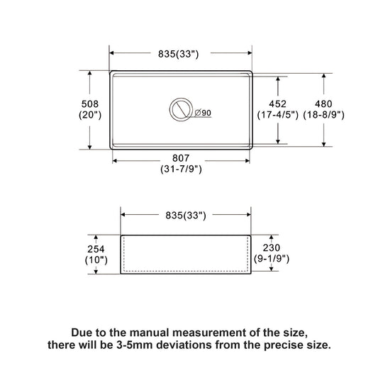 Ceramic Farmhouse Sink, Apron Front Single Bowl With Arch Edge