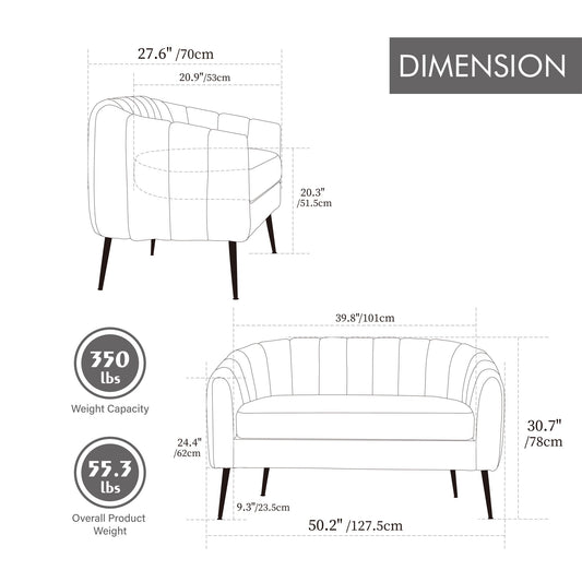 Mid Century Modern Loveseat With Polyester Upholstery And Birch Wood Frame - Beige