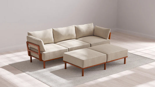 Indoor Jack 3-Seater Sofa + Bench Ottoman in Balsa