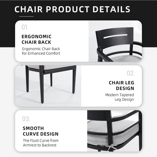 Outdoor Patio Dining Chairs With Outdoor Grade Sunbrella Fabric Cushions, Tapered Feet (Set of 4) - Ember Black