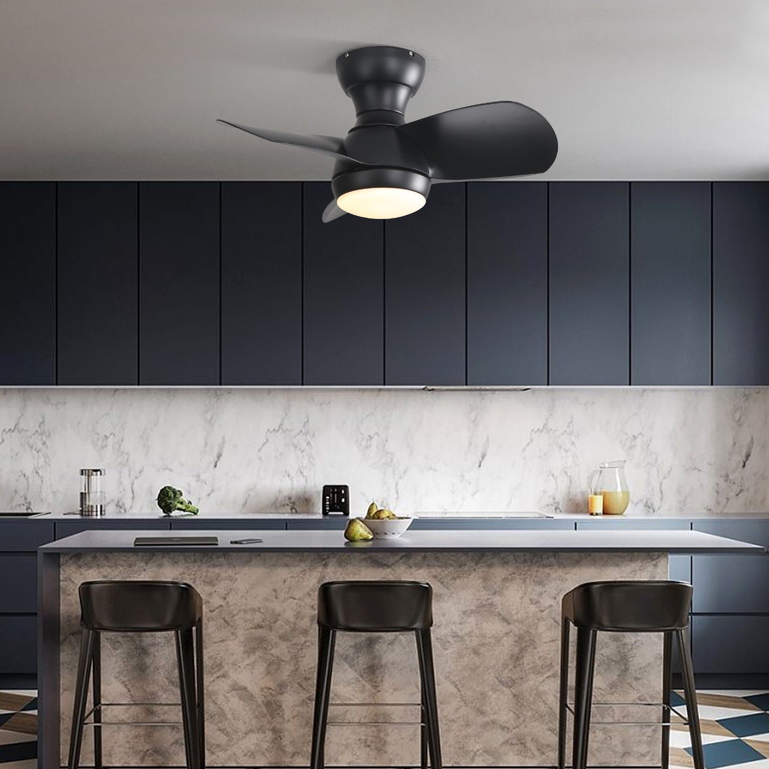 23" Bedroom Ceiling Fan With 3 Color Dimmable 3 ABS Blades Remote Control Dc Motor Black With 18W Led Light - Black23.0"W x 23.0"D x 10.67"H - 6.66 lb