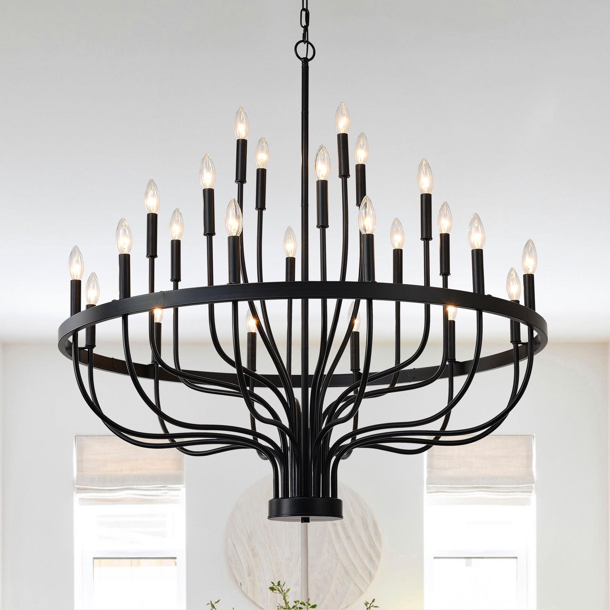 24 Light Chandelier Industrial Iron Candle Chandelier Modern Suspended Farmhouse Chandeliers Pendant Light Fixtures For Dining Room Bedroom Living Room Kitchen Island Foyer E12 Bulb (No Include) - Black39.4"W x 39.4"D x 38.8"H - 30.8 lb