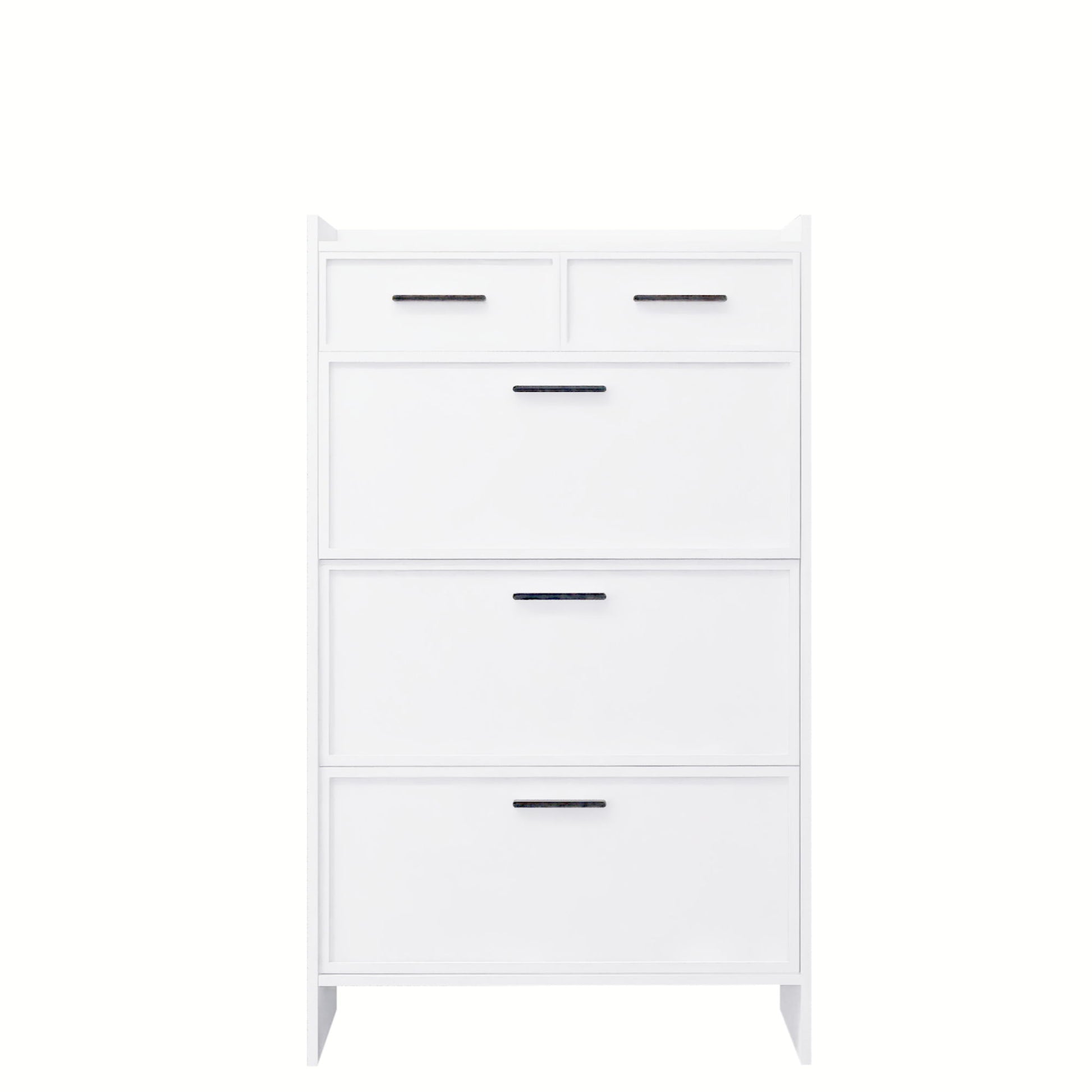 Shaker Shape Door Shoe Rack 3 Doors Shoe Cabinet With 2 Drawers With Open Space For Shoes - Matte White29.5"W x 9.4"D x 50.0"H - 69.3 lb