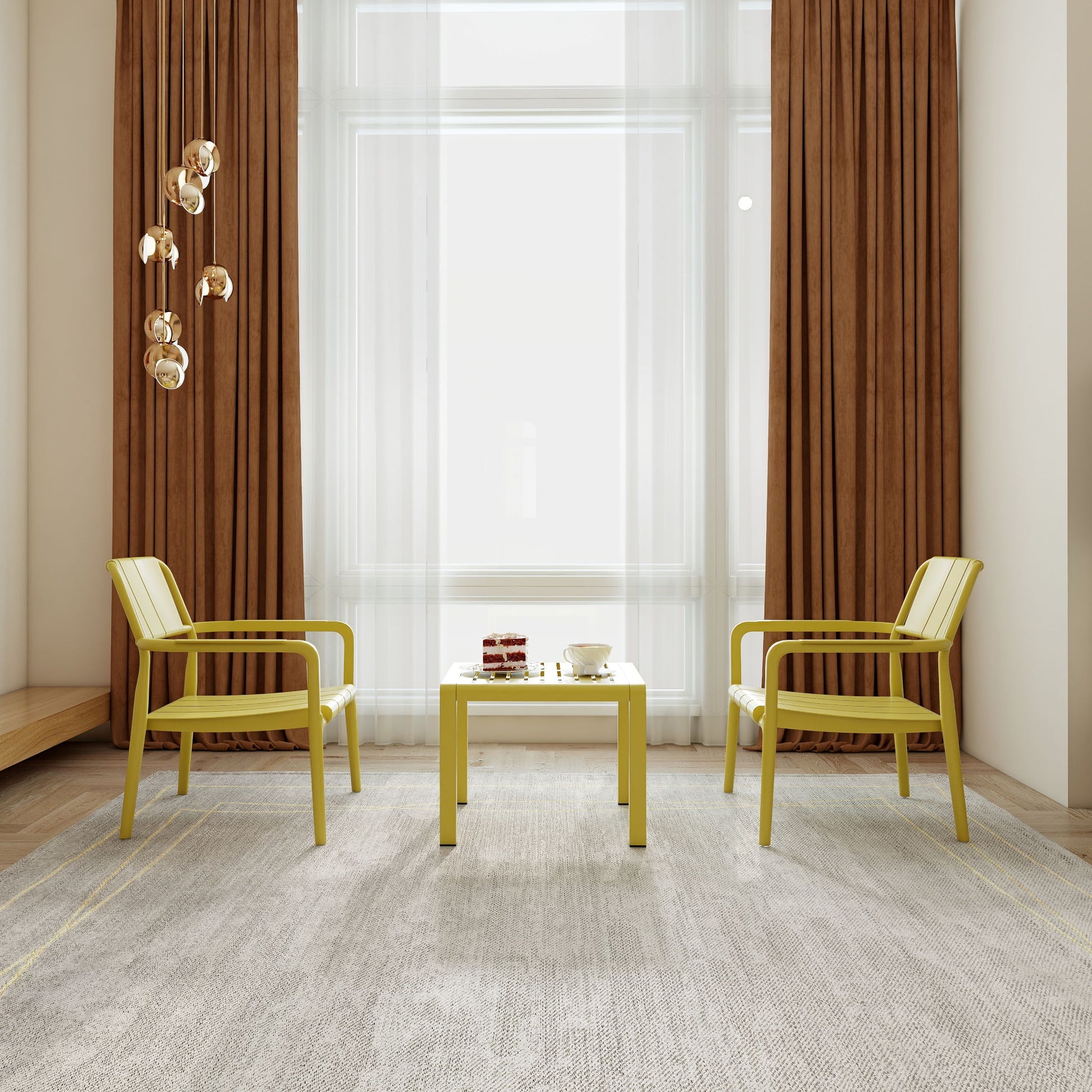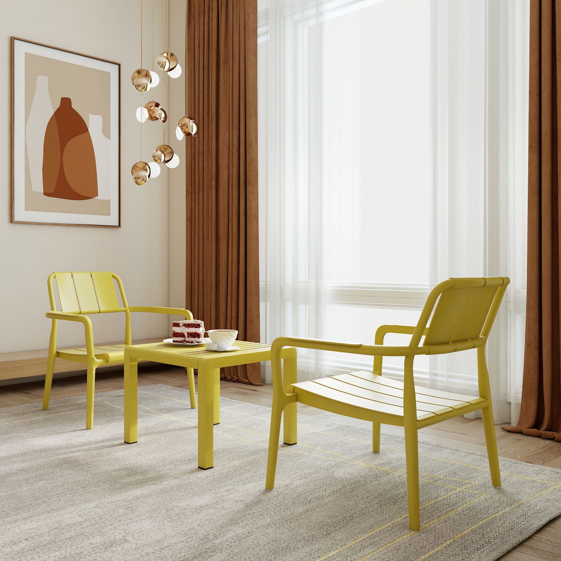 3 Piece Indoor / Outdoor Leisure Table And Chair Set (2 Chairs And 1 Coffee Table), UV Resistant, Waterproof And Durable - Brick Yellow25.0"W x 20.47"D x 27.56"H - 30.03 lb