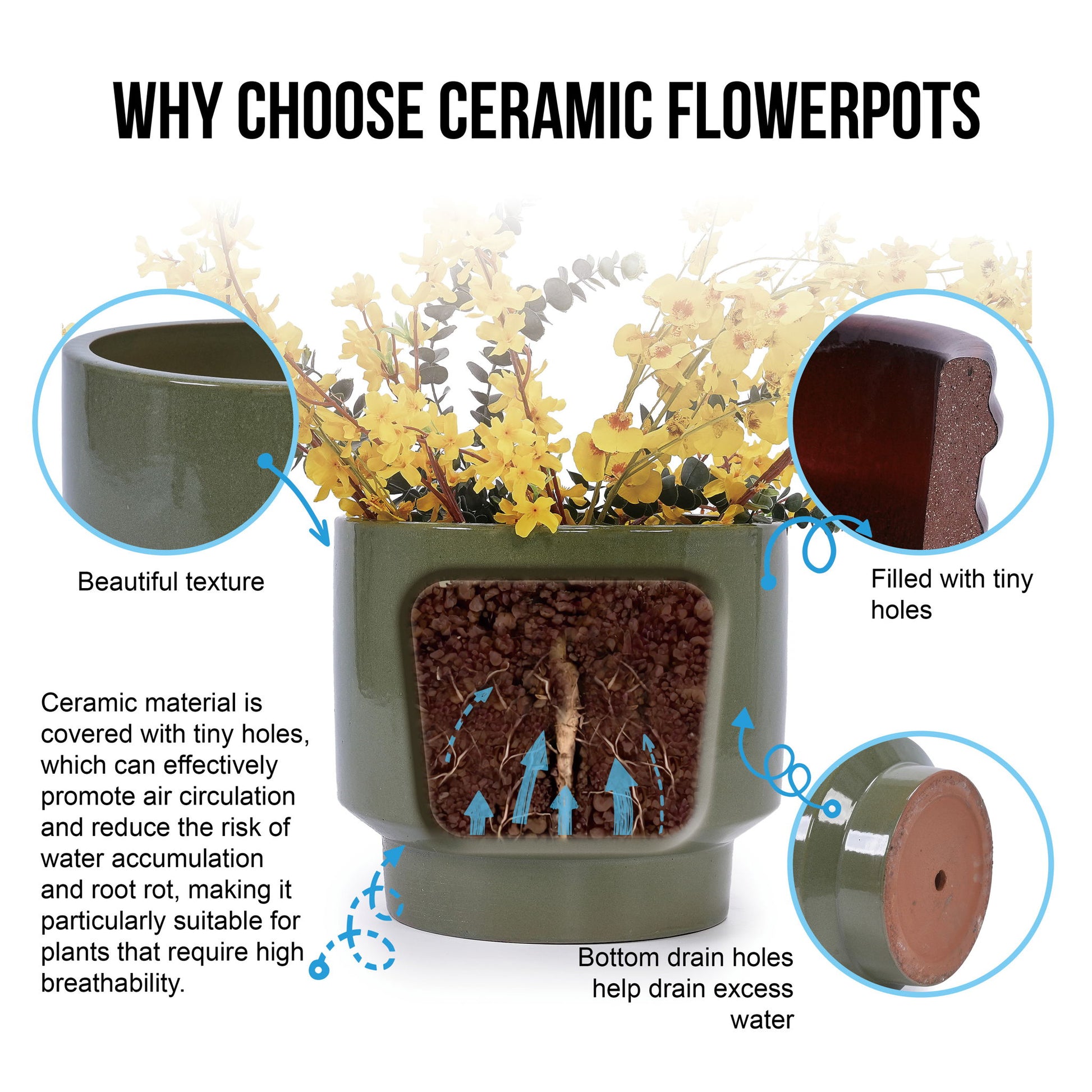 3 Pieces Ceramic Flowerpot, Planter For Patio, Garden Or Windowsills - Antique Light Green15.0"W x 15.0"D x 13.0"H - 54.9 lb