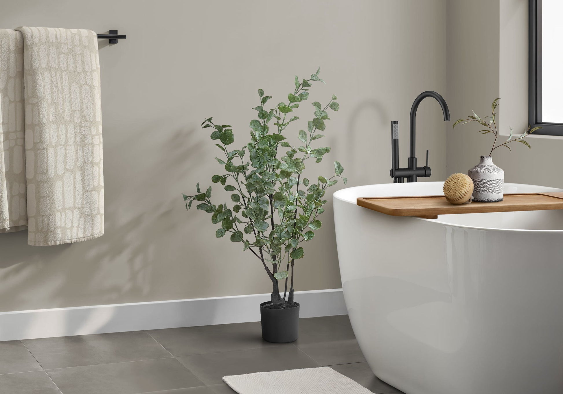 Natural Aesthetic: Enhance any space with this 35" tall indoor artificial Eucalyptus tree, featuring a realistic appearance with 270 life-like green and frosted green leaves.