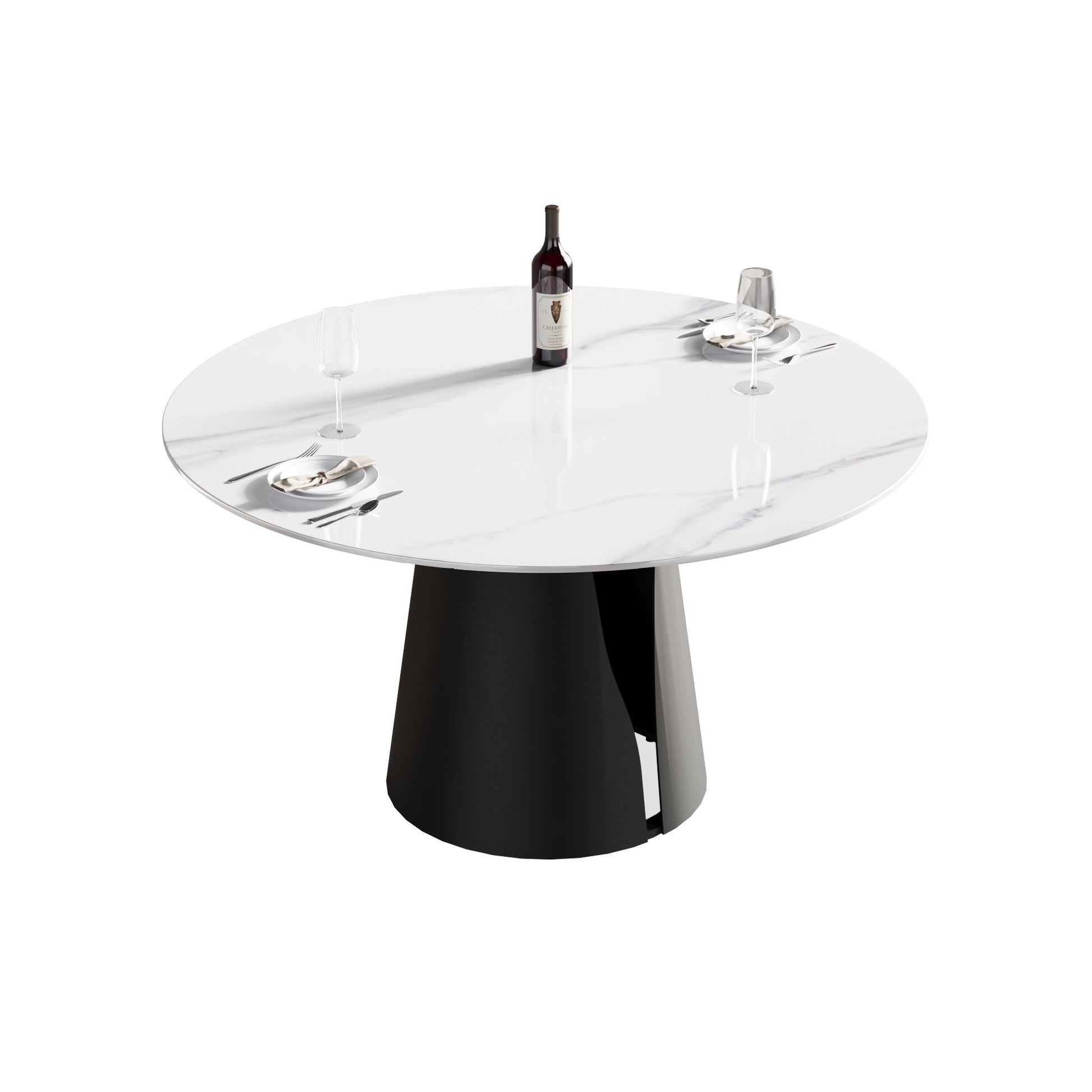 53.15" Modern Artificial Stone Round Carbon Steel Base Dining Table, Can Accommodate 6 People - White / Black53.15"W x 53.15"D x 29.53"H