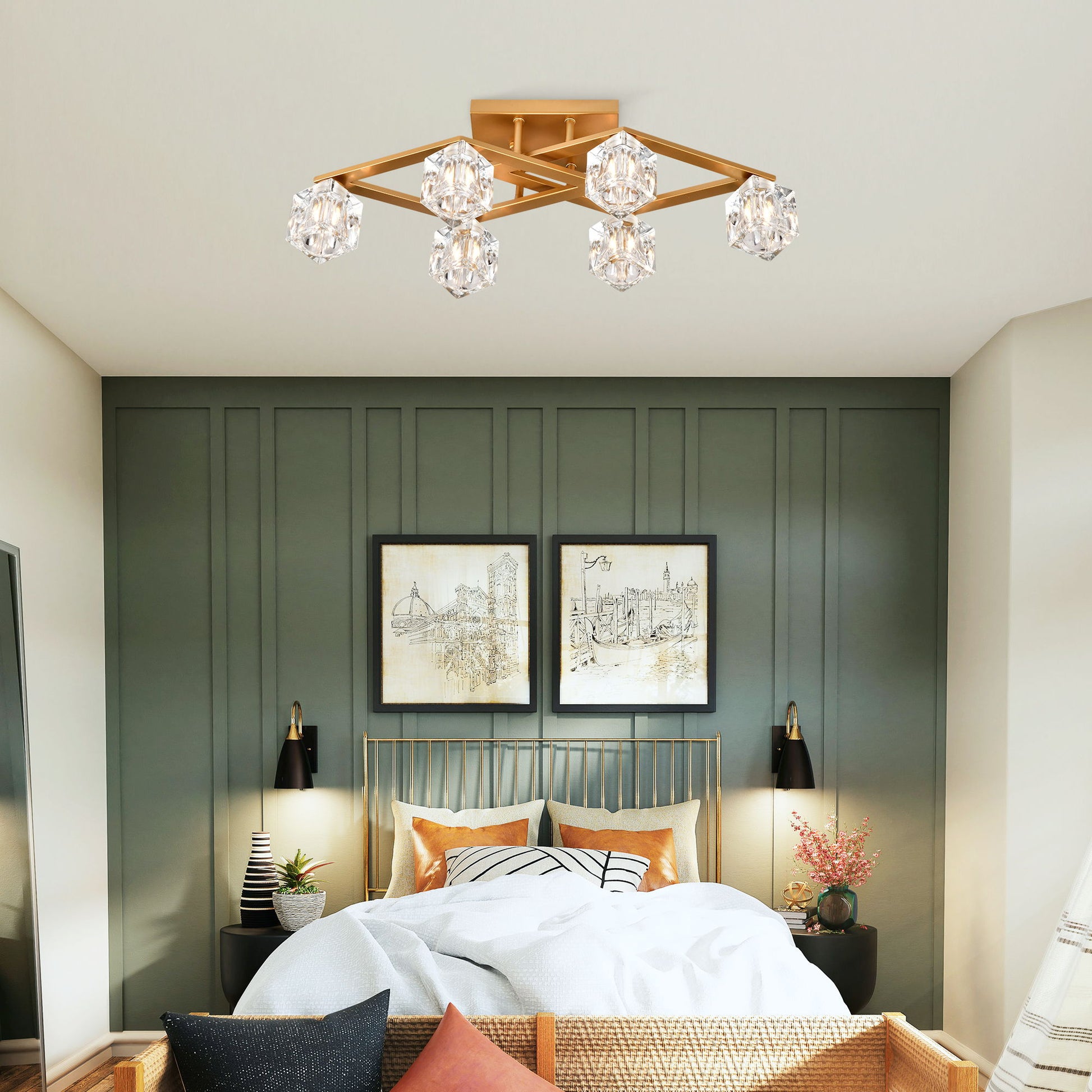6 Light Crystal Ceiling Light For Dining Room, Modern Ceiling Lamp With Light Fixture For Entryway, Lobby, Kitchen, Bedroom, Living Room, Conference Room, (6*G9 Bulbs Included) - Gold24.88"W x 8.7"D x 7.99"H - 10.56 lb