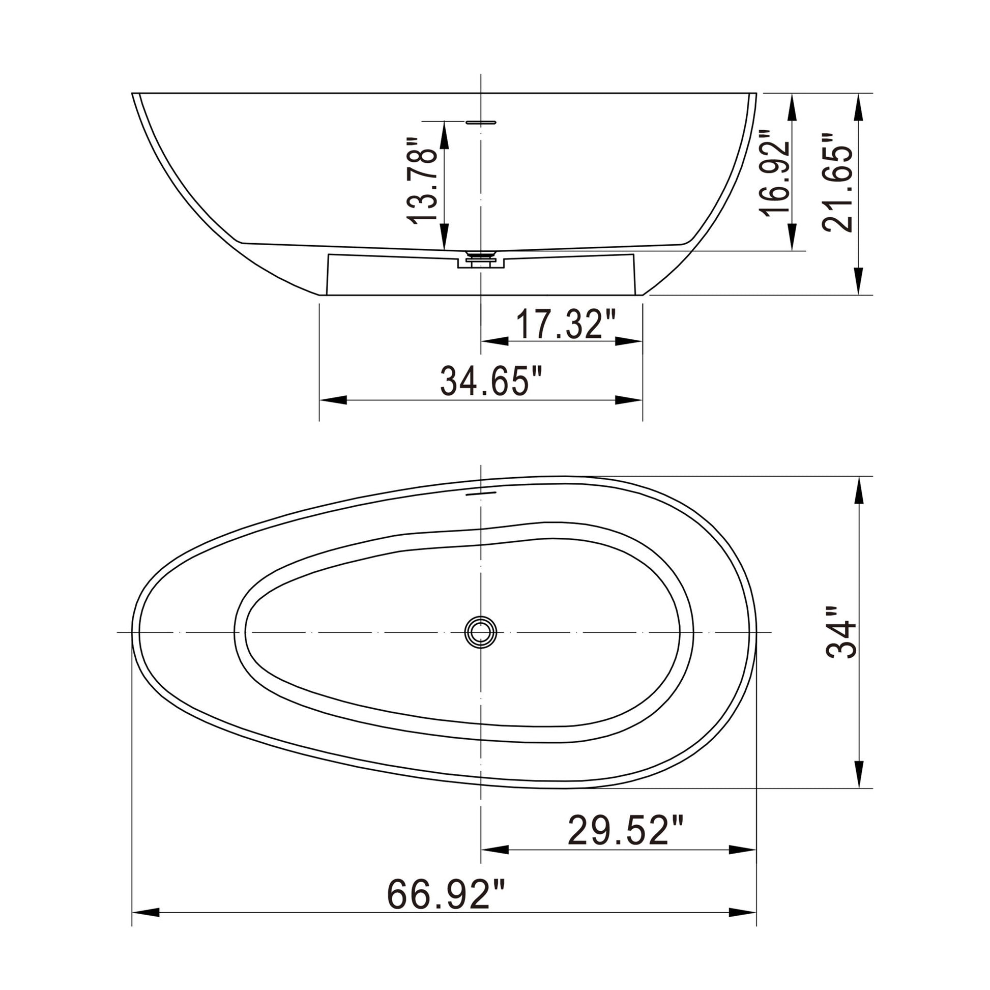 66.9" x 34" x 21.7" Freestanding Solid Surface Soaking Bathtub For Bathroom - Matte White66.9"W x 34.0"D x 21.7"H - 275.6 lb