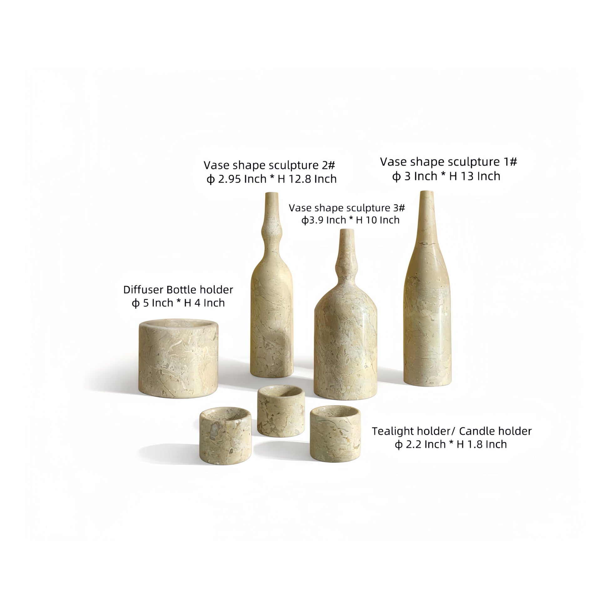 Versatile Set: Includes diffuser holder, candle holders, and sculptural vases to complement any decor.