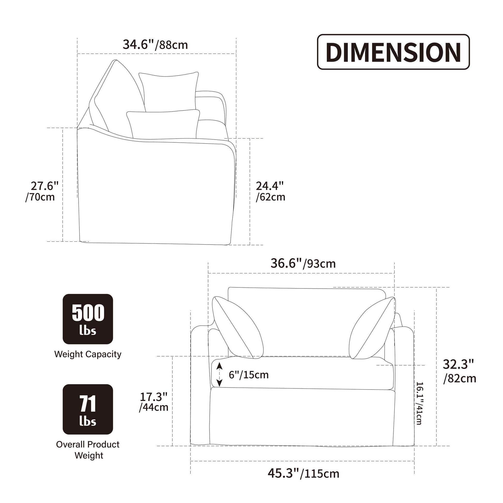 Spacious Seating: 45.27" wide seat with dual bolsters and large back pillow for enhanced comfort and support