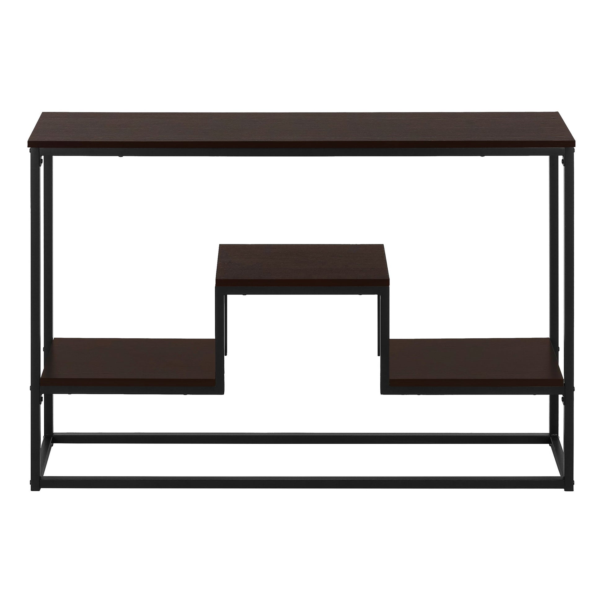 Multi-Tier Design: This console table features a long, rectangular tabletop and three storage shelves, providing ample space for display and storage in a finish.