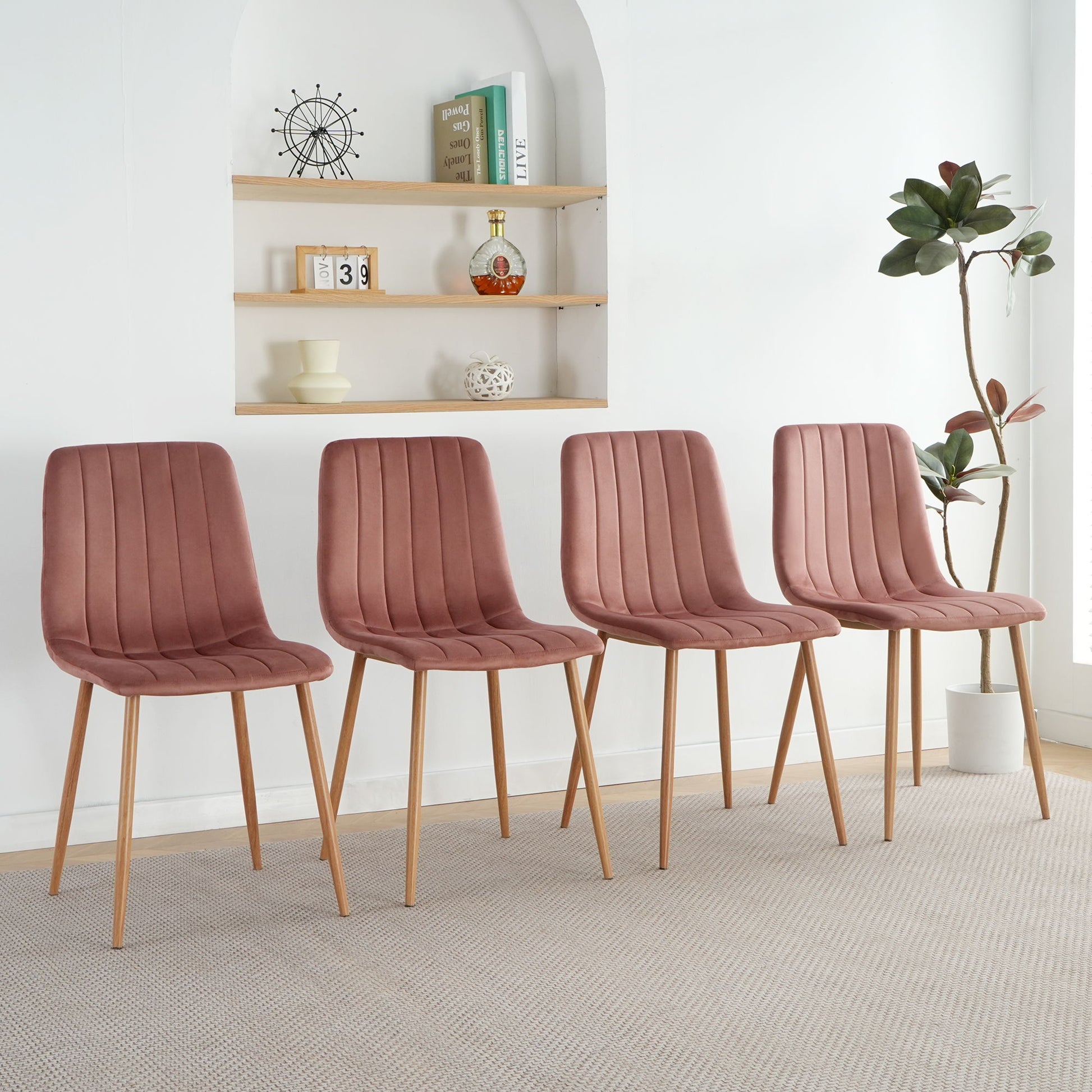 Modern Velvet Dining Chair (Set of 4) With Backrest And Metal Legs For Kitchen And Living Room - Pink16.1"W x 17.5"D x 34.1"H - 8.8 lb