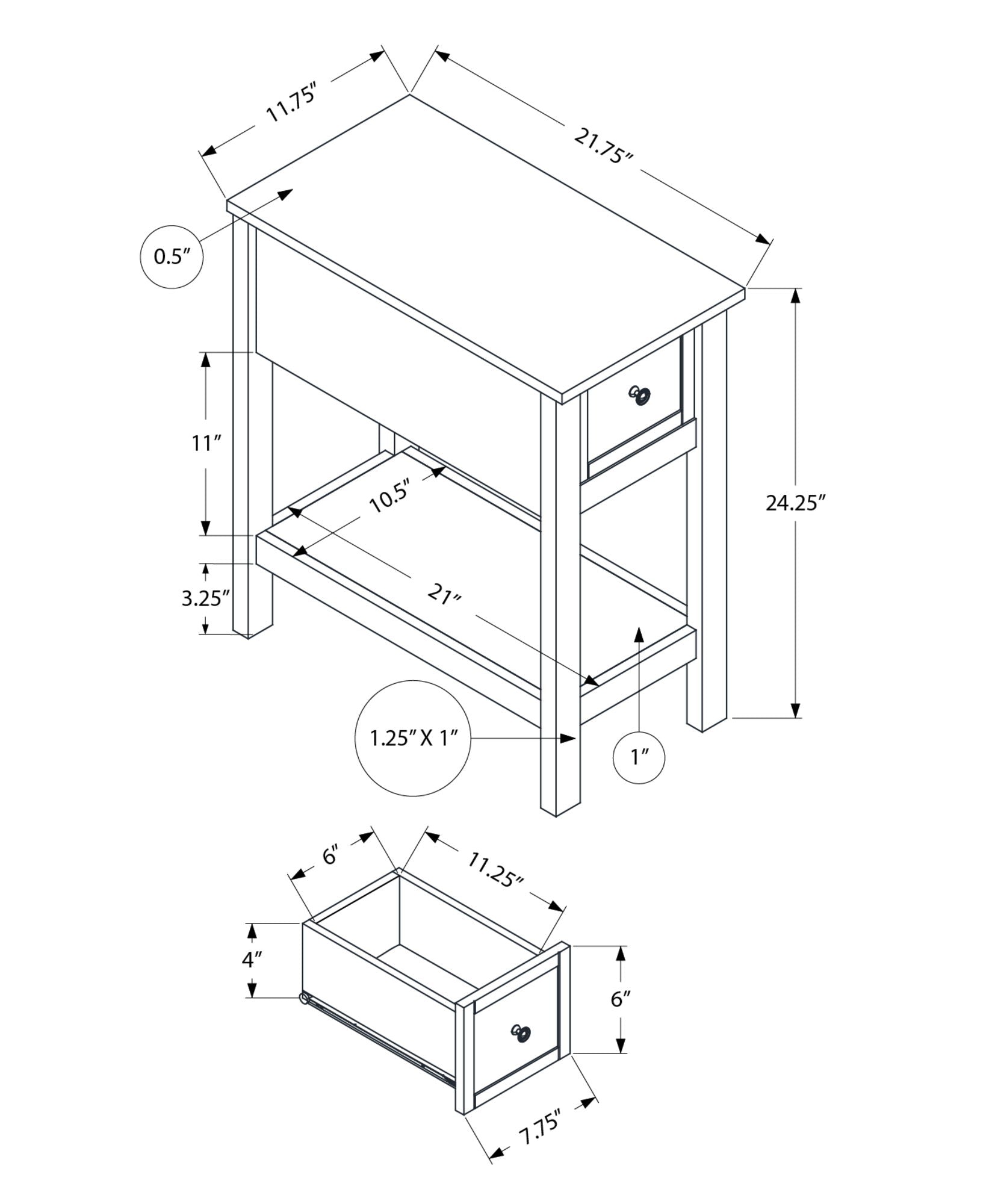 Accent End Table, Narrow, Storage Drawer, Transitional - Espresso11.75"W x 21.75"D x 24.25"H - 18.0 lb