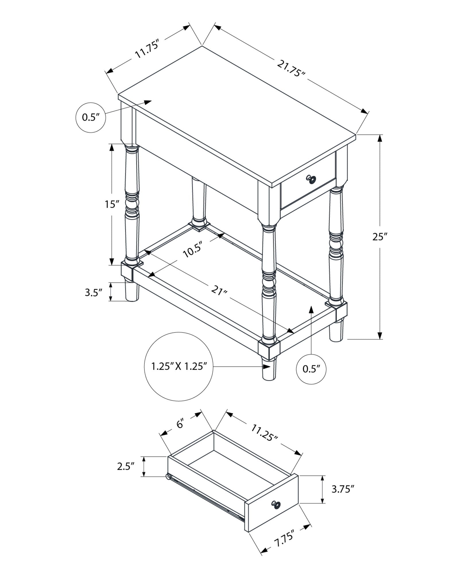Accent End Table, 2 Tier, Storage Drawer, Traditional - White11.75"W x 21.75"D x 25.0"H - 16.0 lb