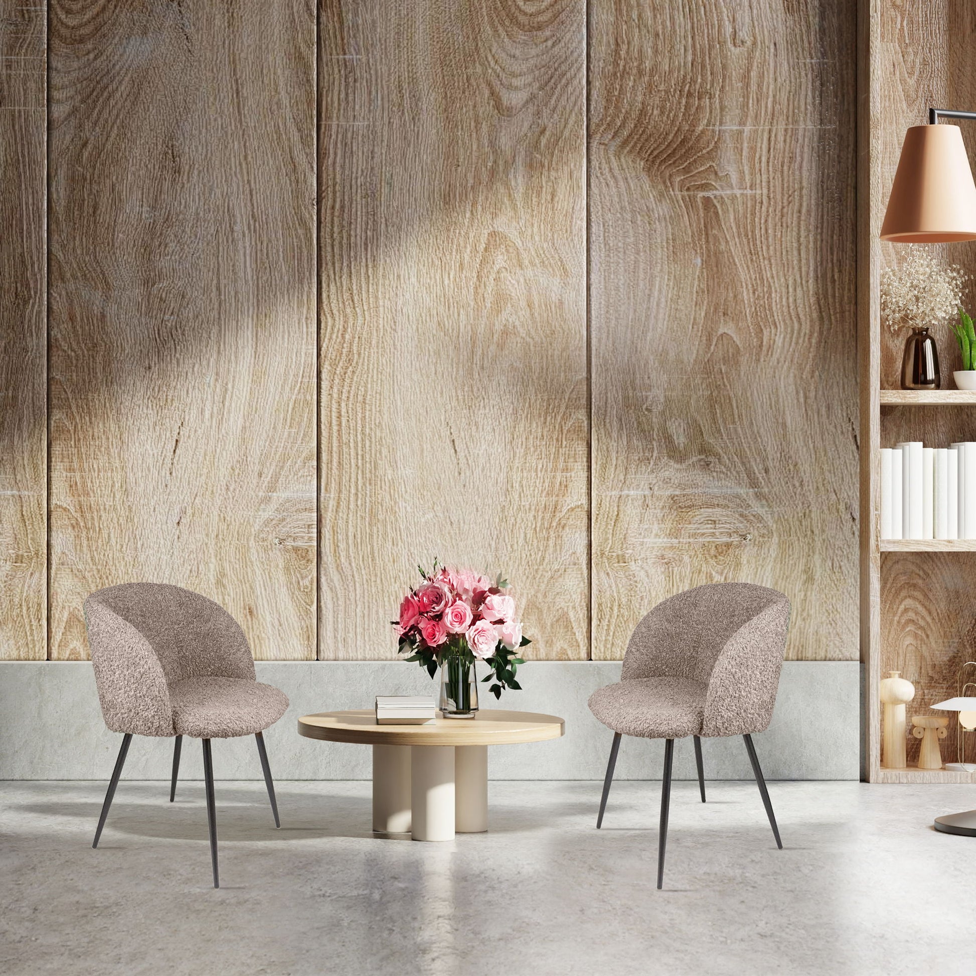 Adjust Legs Upholstered Teddy Faux Fur Dining Armrest Chair (Set of 2) - Light Brown20.86"W x 19.68"D x 32.48"H - 23.19 lb