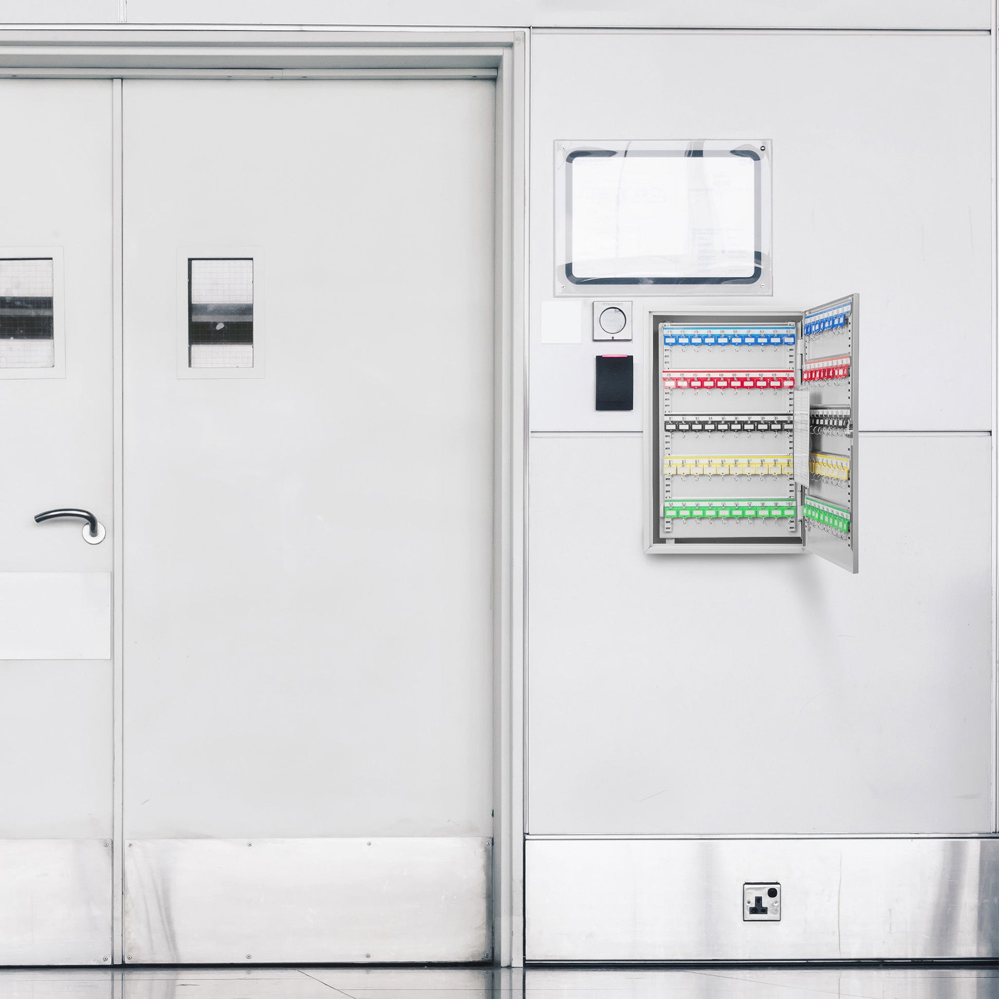 Adjustable Key Storage: This key cabinet features adjustable racks, allowing flexible storage for up to keys, ensuring they are organized and easily accessible.