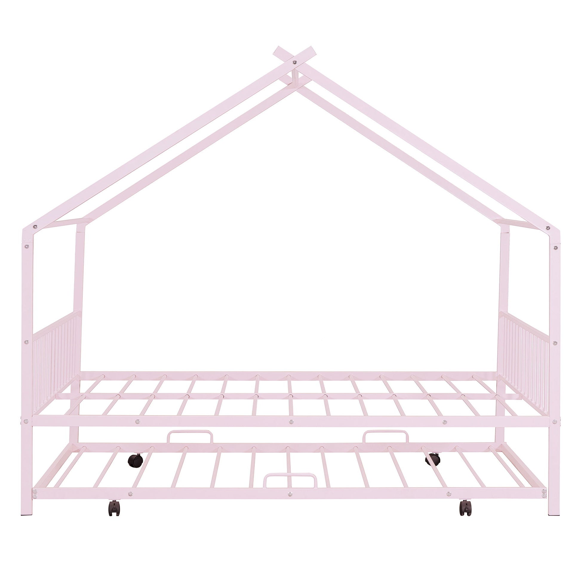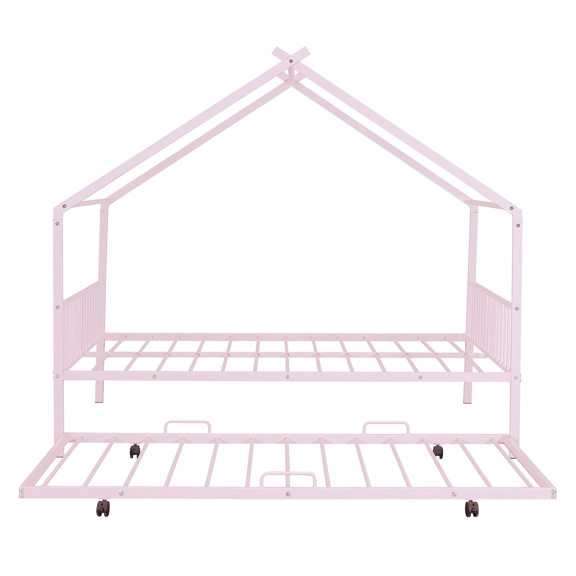 Full Size House Bed With Twin Size Trundle - Pink77.6"W x 55.6"D x 68.9"H - 66.14 lb