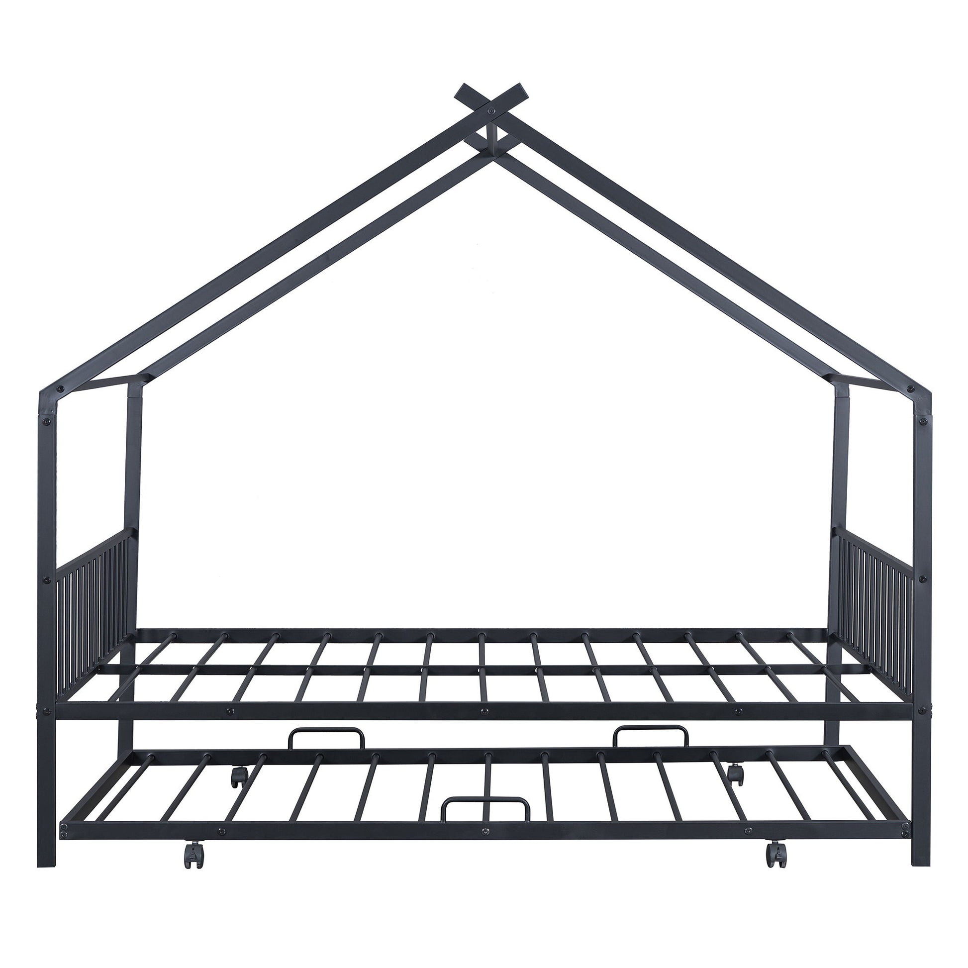 Full Size House Bed With Twin Size Trundle - Black77.6"W x 55.6"D x 68.9"H - 66.14 lb