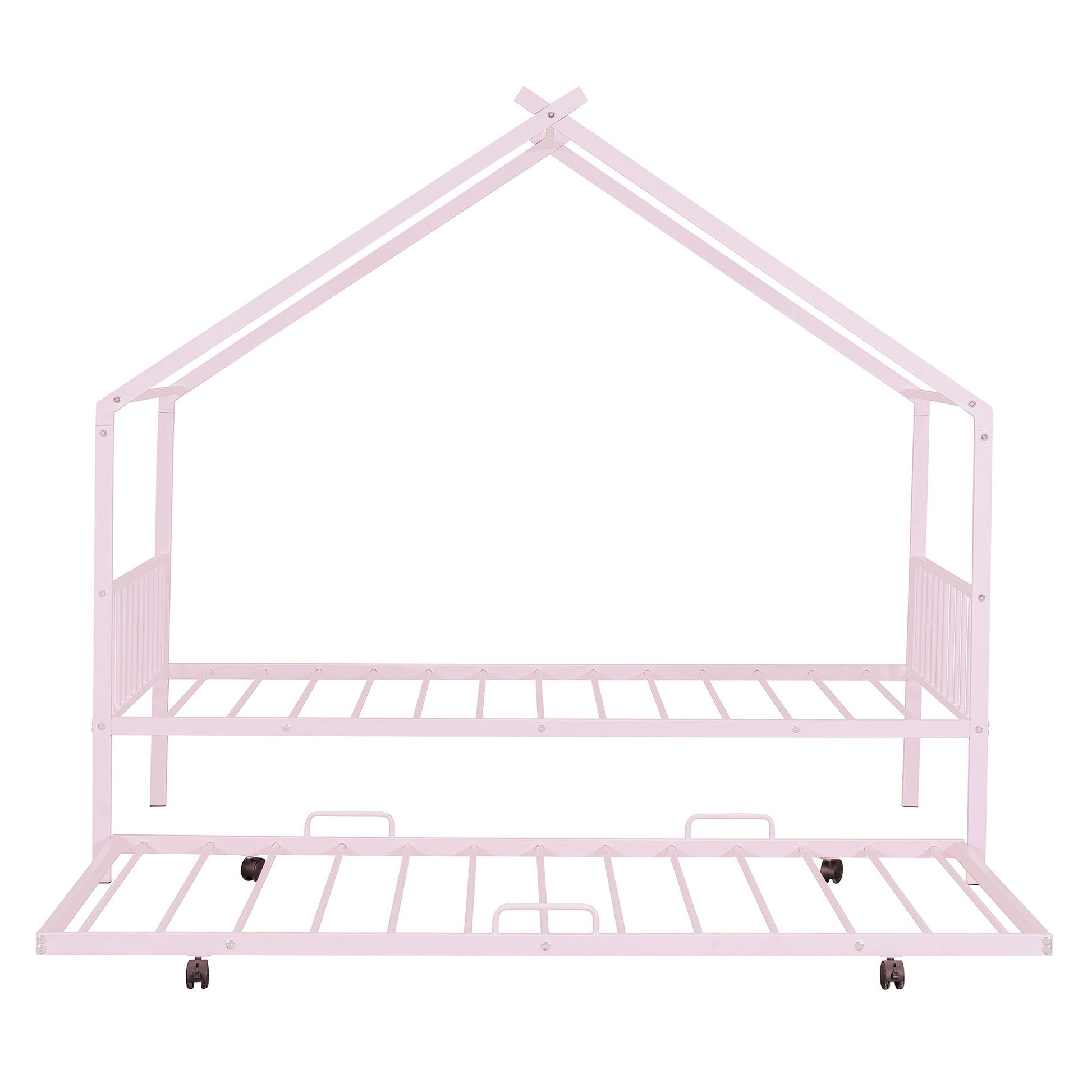 Twin Size House Bed With Twin Size Trundle - Pink77.6"W x 40.6"D x 68.9"H - 59.5 lb