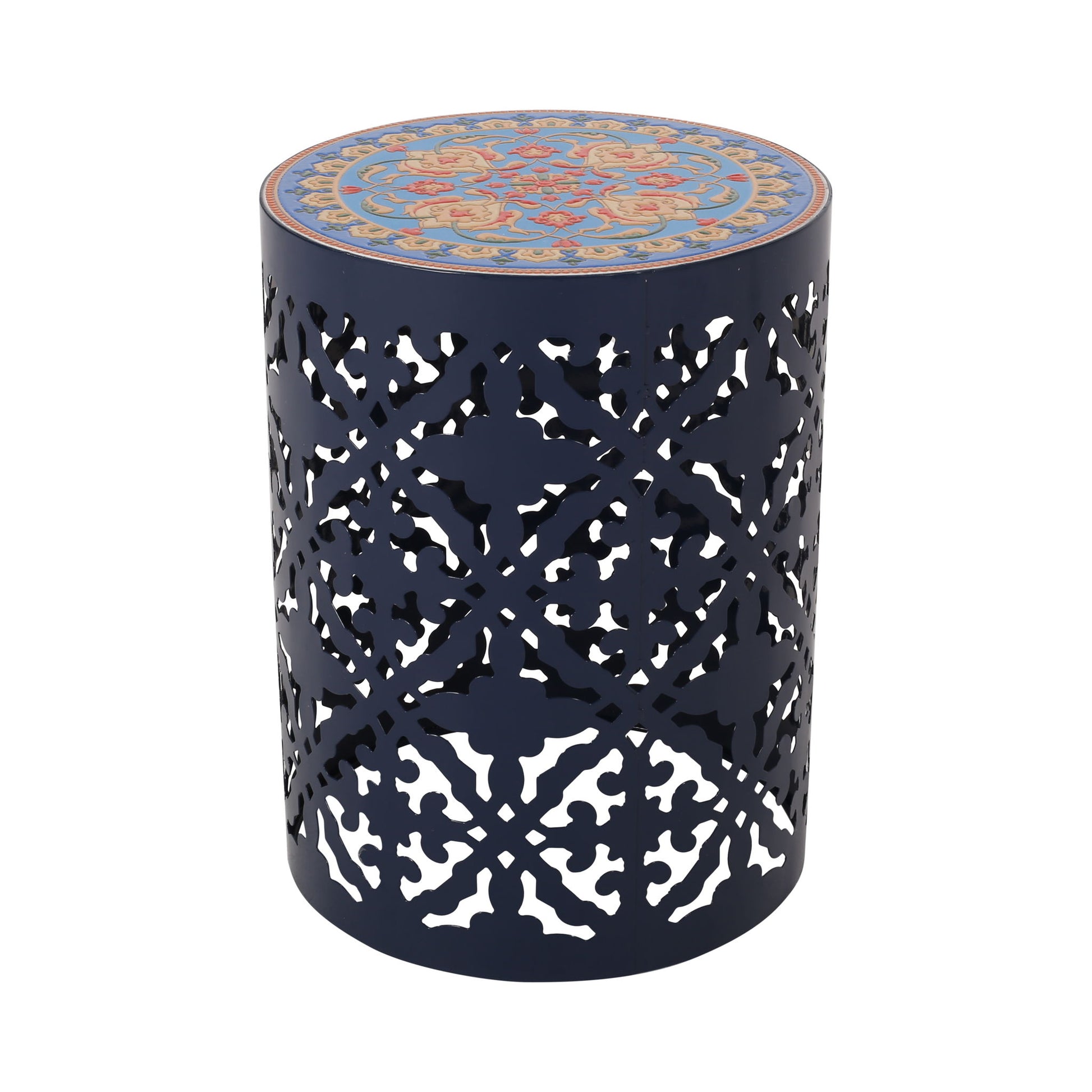 Outdoor Lace Cut Metal Side Table - Dark Blue14.0"W x 14.0"D x 18.0"H - 13.32 lb