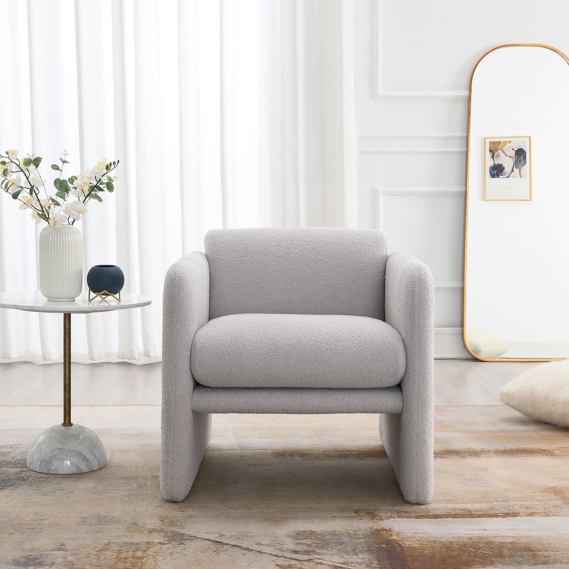 Arm Chair With Waved Arms, Metal Decoration On Both Side Arms, Accent Chair For Primary Living Space, Living Room, Bedroom, Teddy Fabric - Light Gray28.25"W x 30.0"D x 27.0"H - 35.0 lb