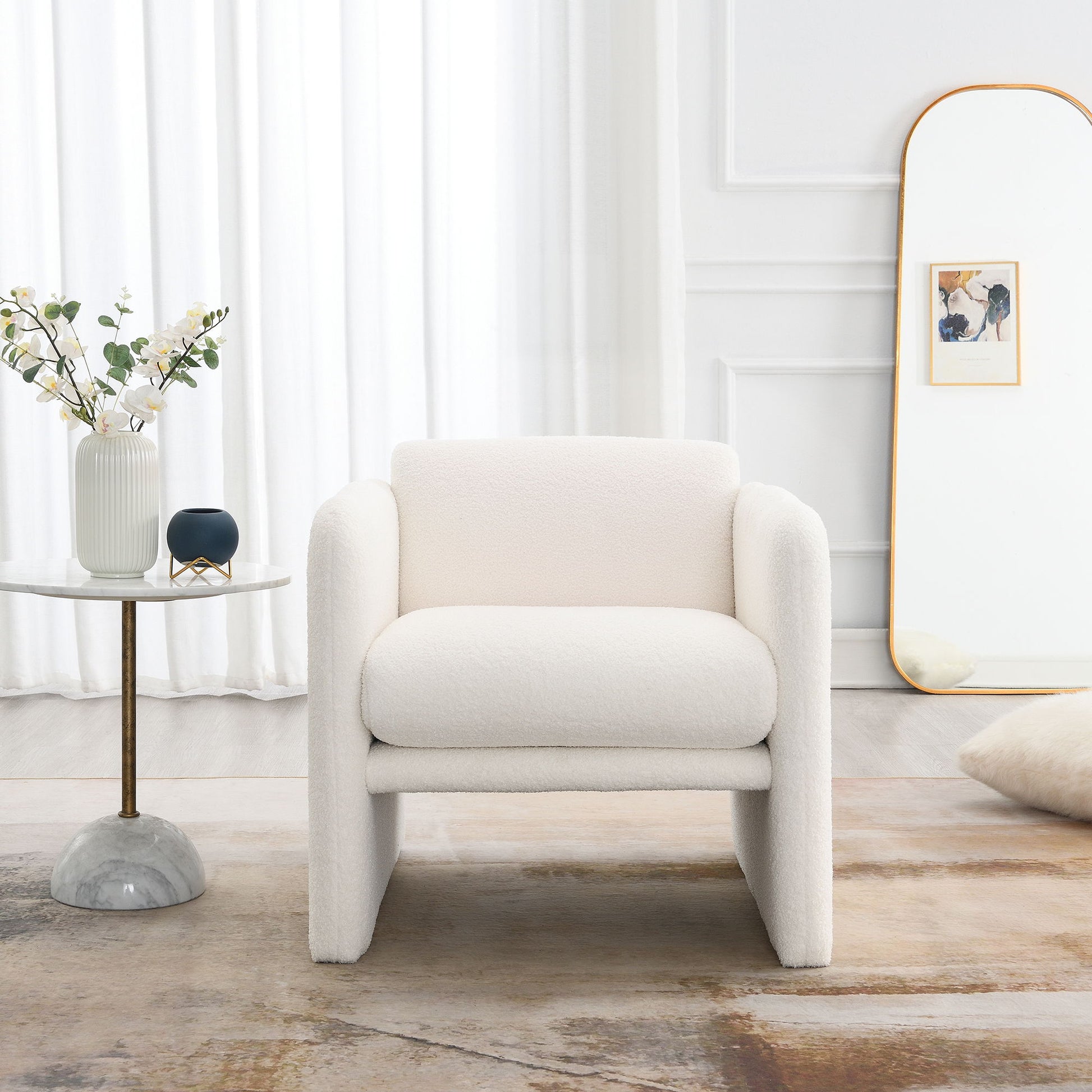 Arm Chair With Waved Arms, Metal Decoration On Both Side Arms, Accent Chair For Primary Living Space, Living Room, Bedroom, Teddy Fabric - White28.25"W x 30.0"D x 27.0"H - 35.0 lb