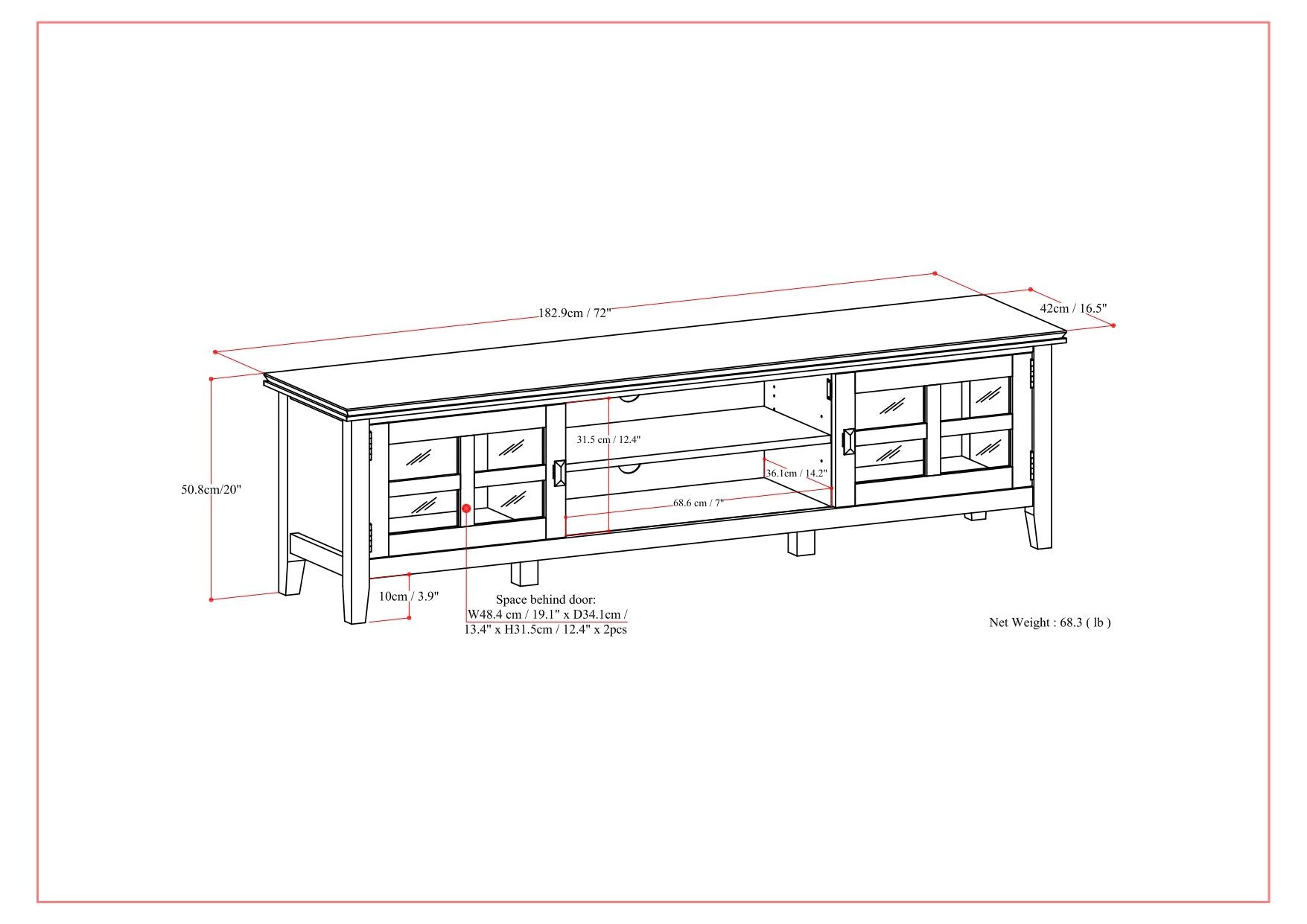 • DIMENSIONS: 16.5" D x 72" W x 20" H