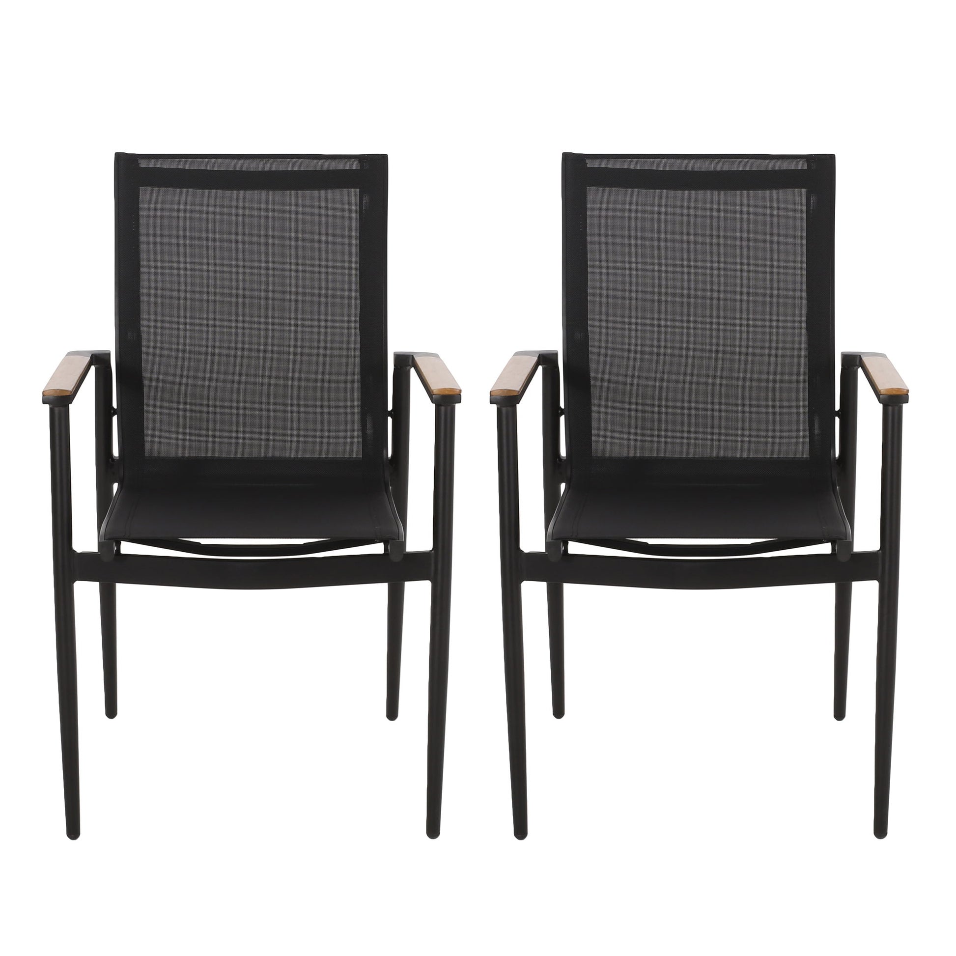 - Modern design: With clean, precise lines, our set of chairs is the ideal modern accessory for your outdoor space. Finished with sleek outdoor mesh, smooth aluminum frames, and faux wood accents
