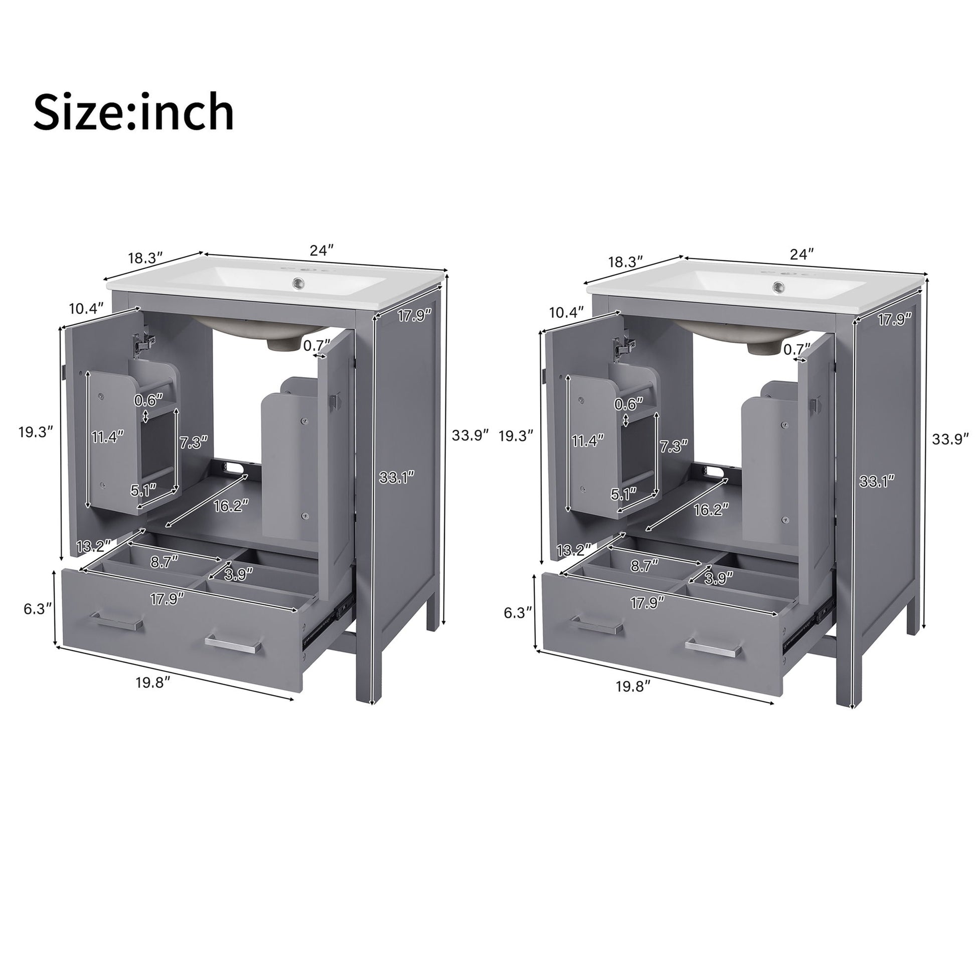 24" Bathroom Vanity With Integrated Undermount Sink, 2 Doors 1 Drawer, Soft Close Hinges, - Gray18.3"W x 24.0"D x 33.9"H - 77.16 lb
