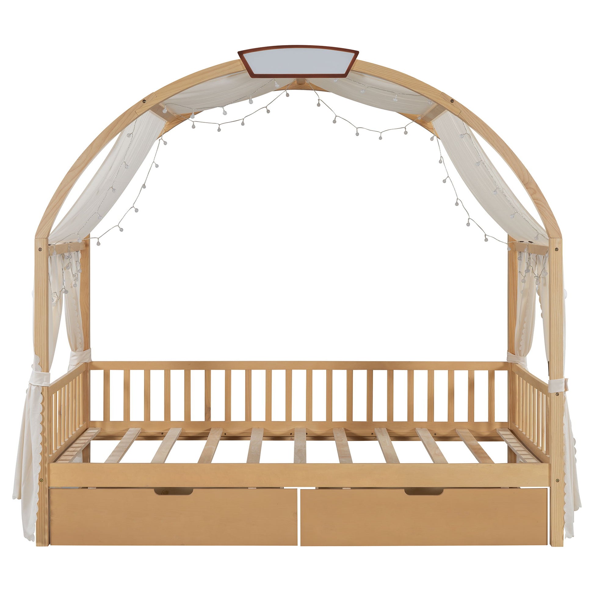 Twin Size Bed With Arched Roof And 2 Drawers - Natural80.9"W x 41.8"D x 76.4"H - 42.5 lb