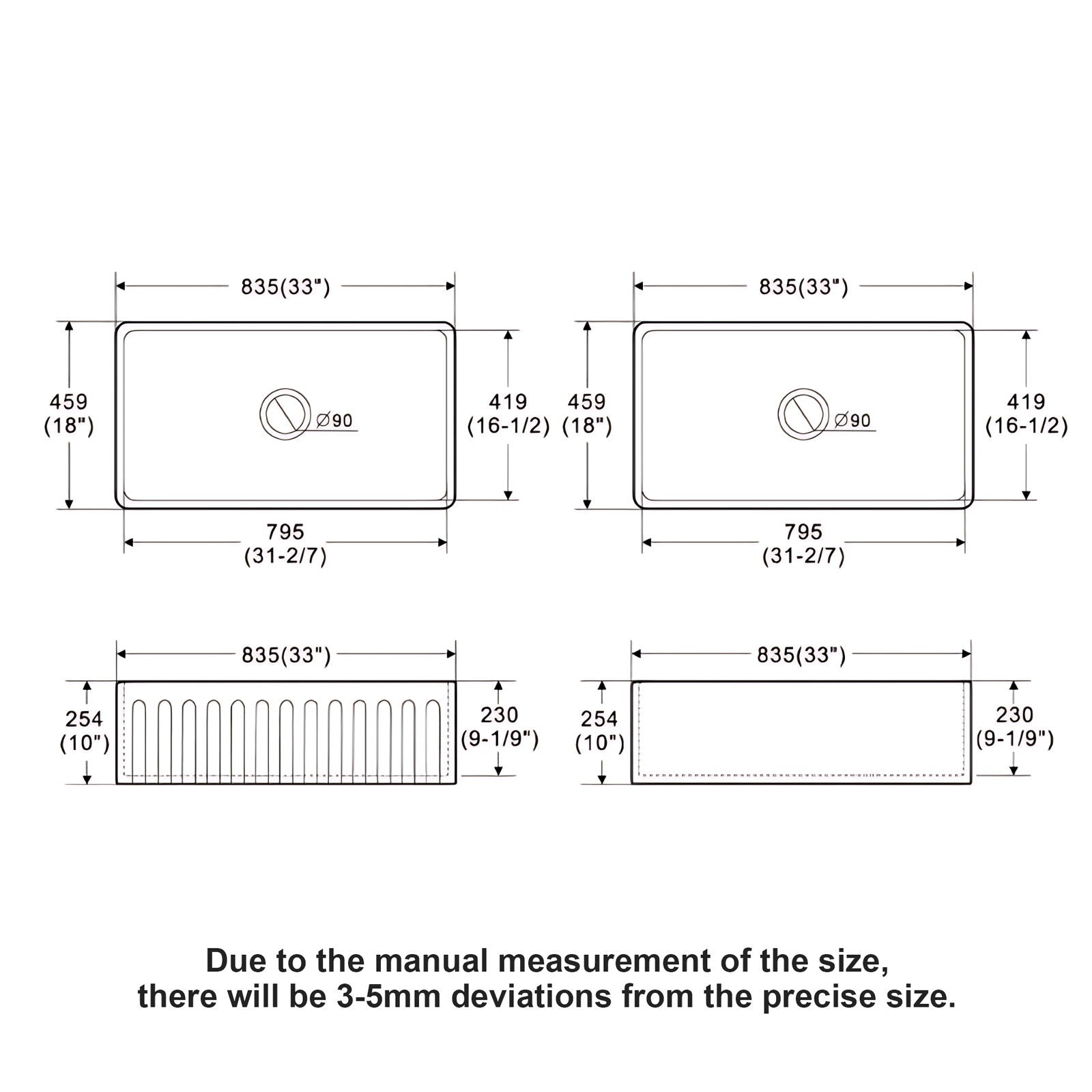Single Bowl Kitchen Sink 33" Reversible Design With Durable And Deep Basin - White33.0"W x 18.0"D x 10.0"H - 79.2 lb