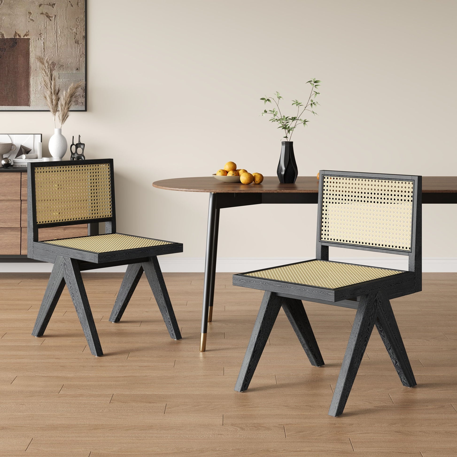 Chandigarh - Dining Room Chairs With Rattan And Solid Wood (Set of 2) - Natural18.25"W x 21.5"D x 30.25"H - 11.25 lb