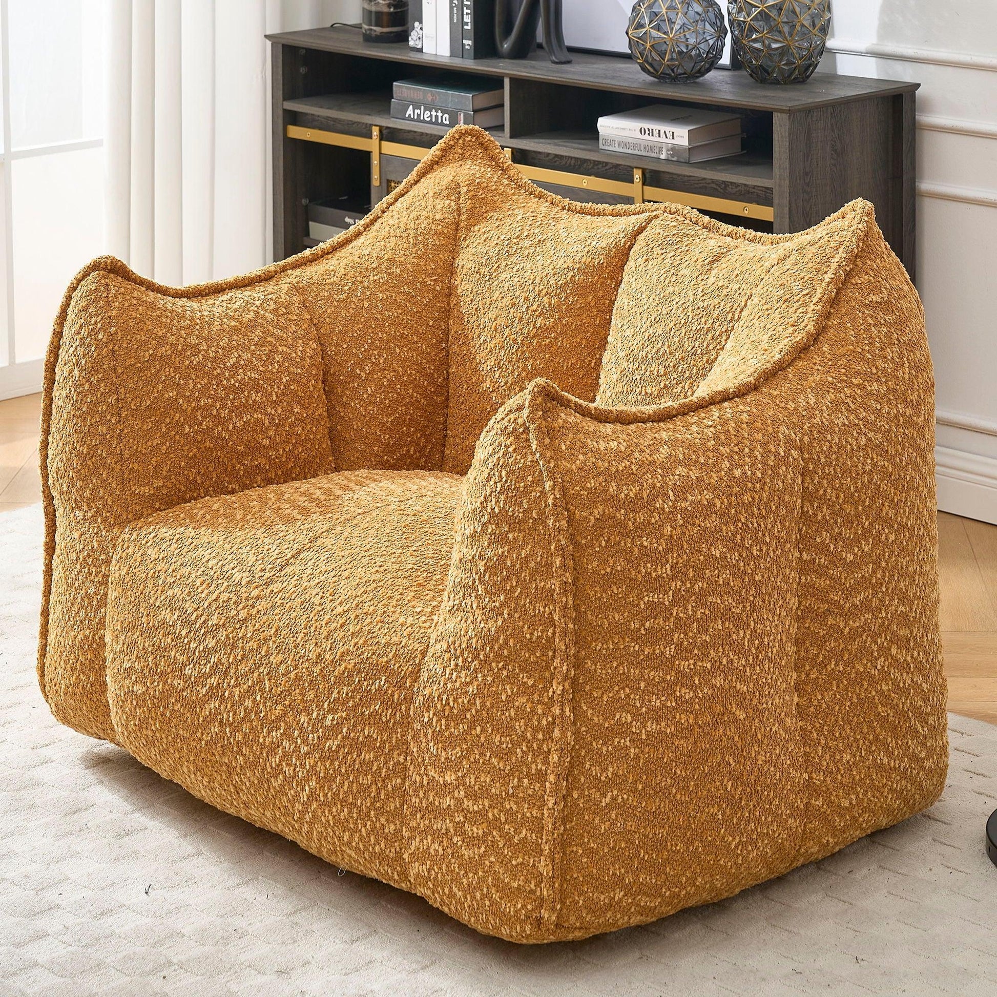 Comfortable Chenille Sofa Chairs With Highly Resilient Foam For Living Rooms And Bedrooms Square Lazy Sofas - Yellow47.2"W x 36.2"D x 30.7"H - 57.2 lb