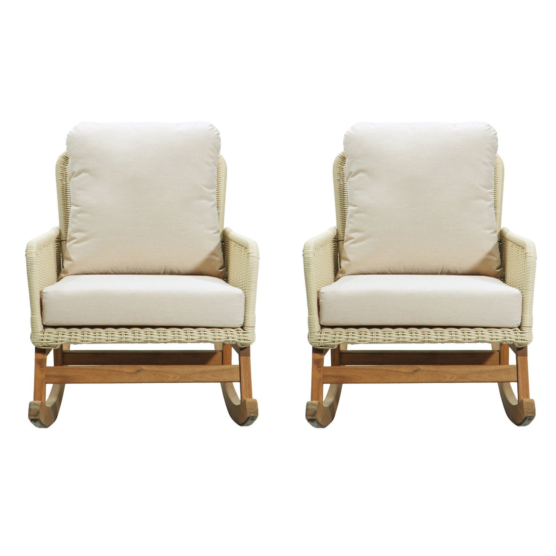 Contemporary Minimalist Wicker Rocking Chair Set With Soft Polyester Cushions And Durable Wooden Frame For Indoor And Outdoor Spaces - Ivory24.8"W x 42.52"D x 31.5"H - 29.76 lb