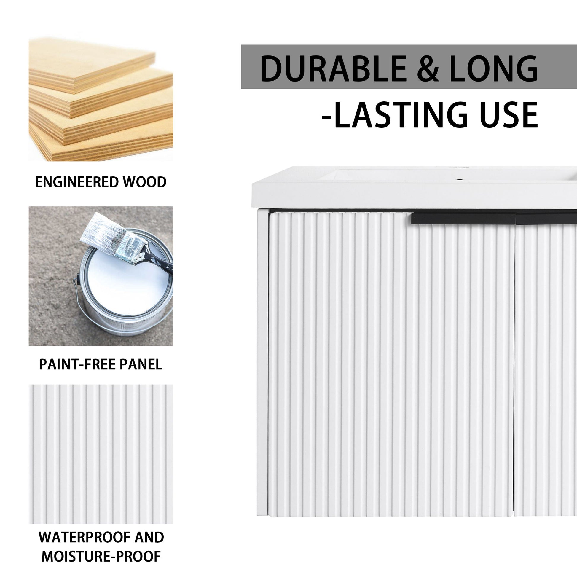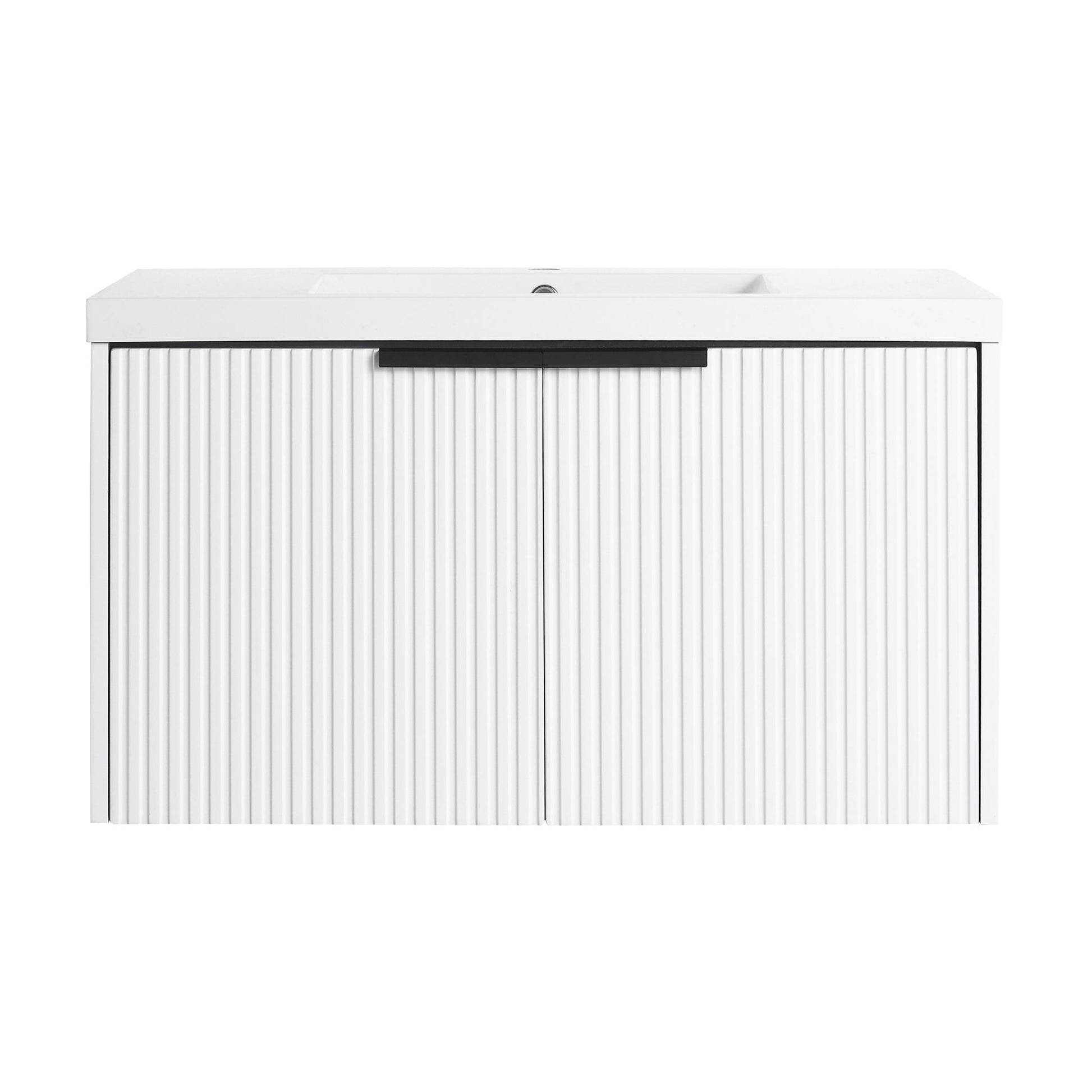 Contemporary Wall Mounted Bathroom Vanity With Resin Sink & Soft Close Doors - White35.4"W x 18.1"D x 20.5"H - 79.2 lb