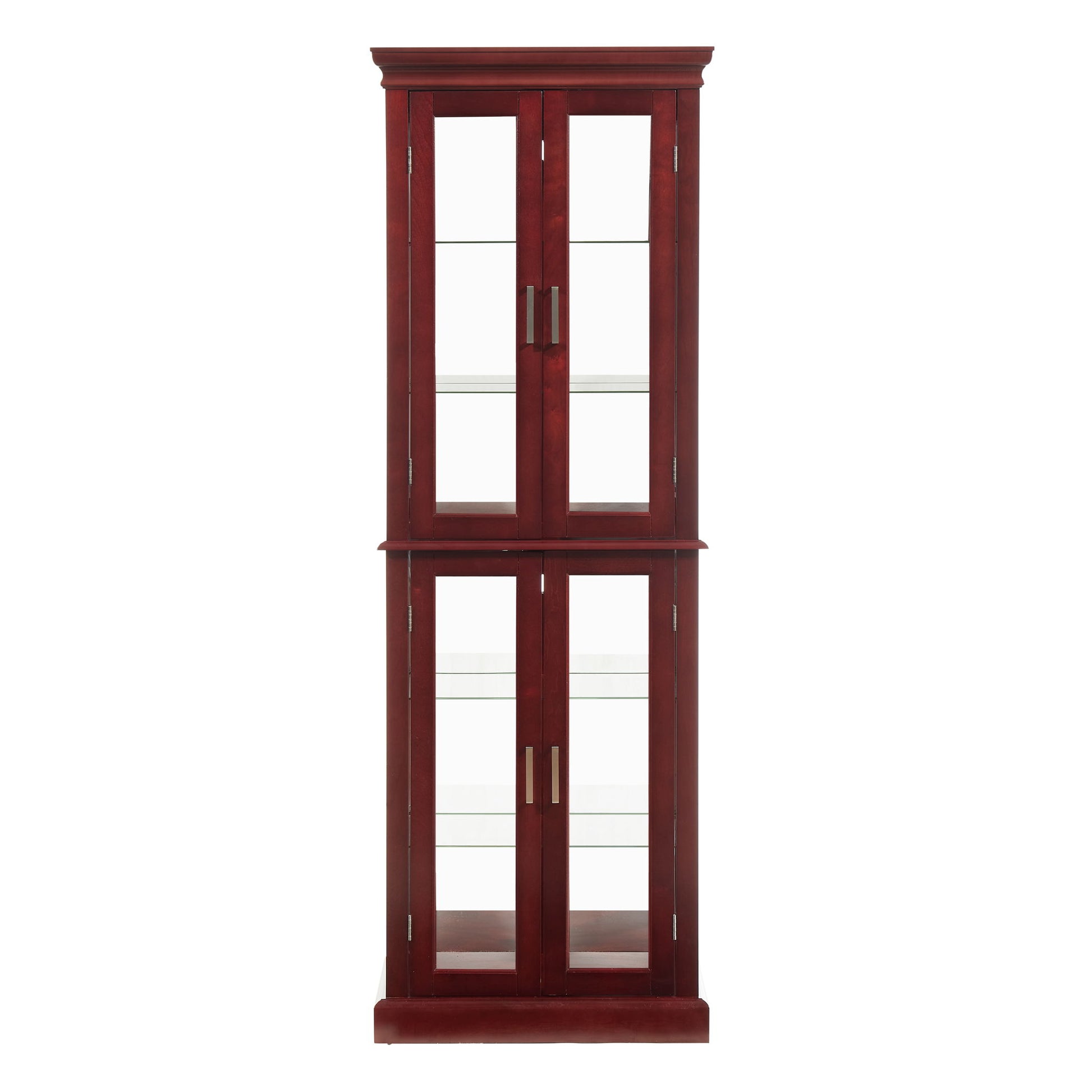 Curio Cabinet Lighted Curio Diapaly Cabinet With Adjustable Shelves And Mirrored Back Panel, Tempered Glass Doors 6 Tier, (E26 Light Bulb Not Included) - Cherry23.75"W x 11.75"D x 70.0"H - 75.83 lb