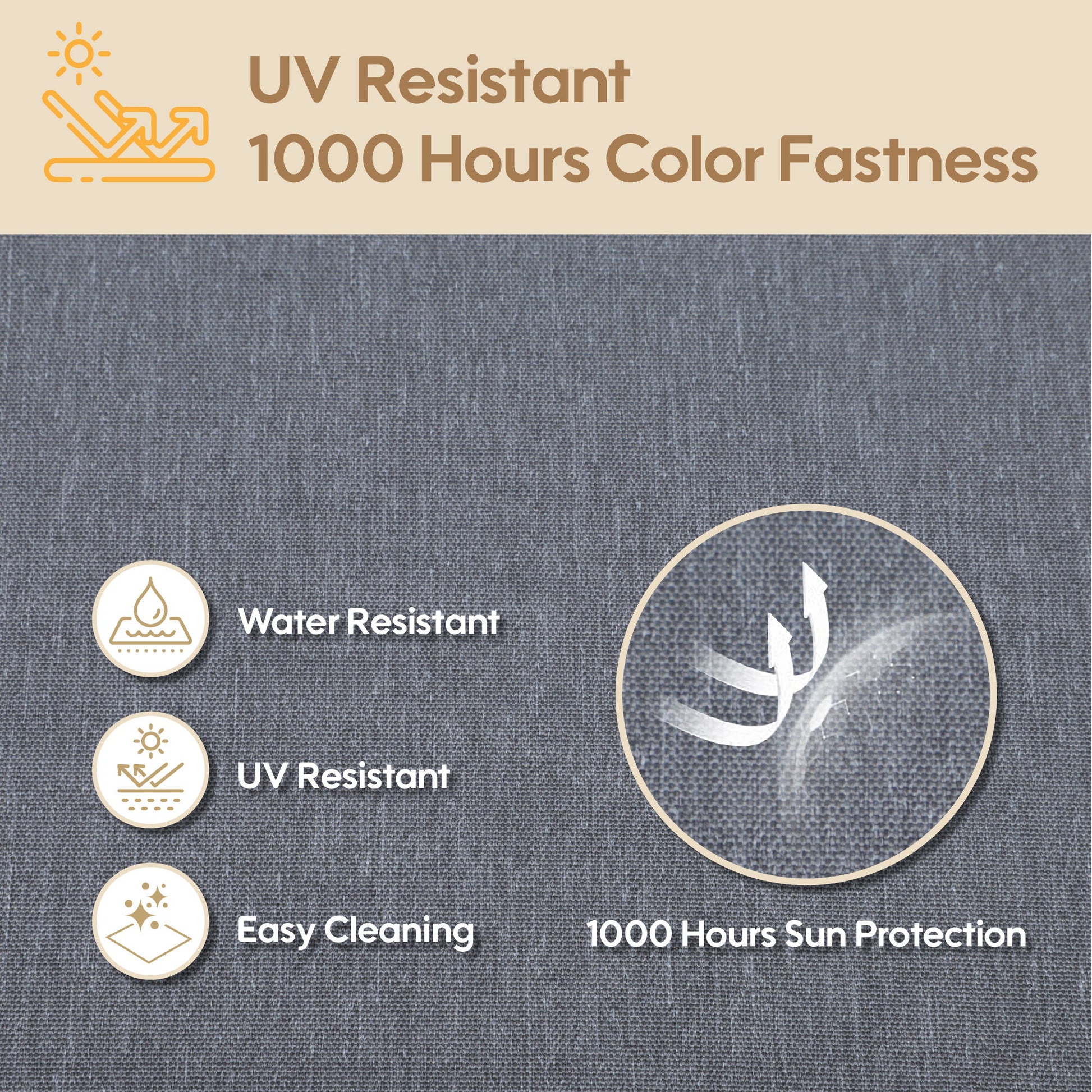 Colorfast Outdoor Fabric: Crafted with color-woven fabric designed for outdoor durability, these cushions resist fading for 2+ years and can withstand 1000+ hours of direct sunlight exposure.