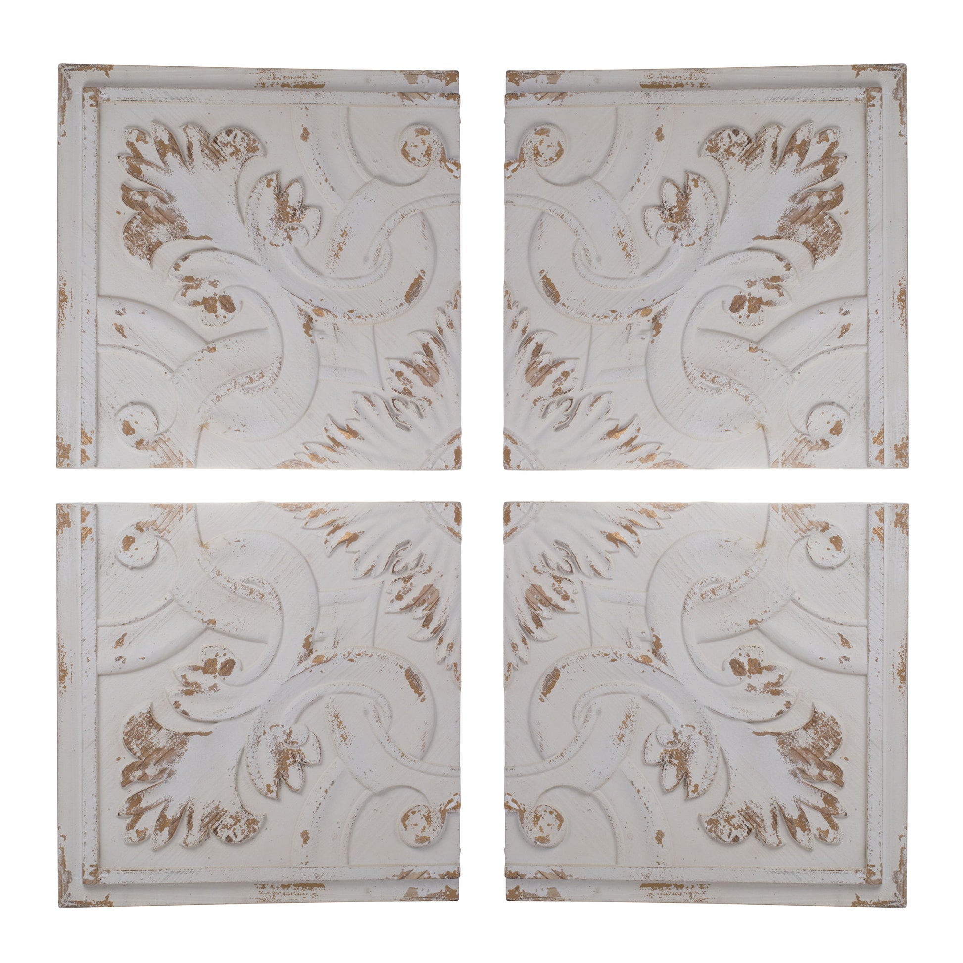 Distressed Wooden Square Wall Panels (Set of 4) - White17.5"W x 1.5"D x 17.5"H - 15.0 lb