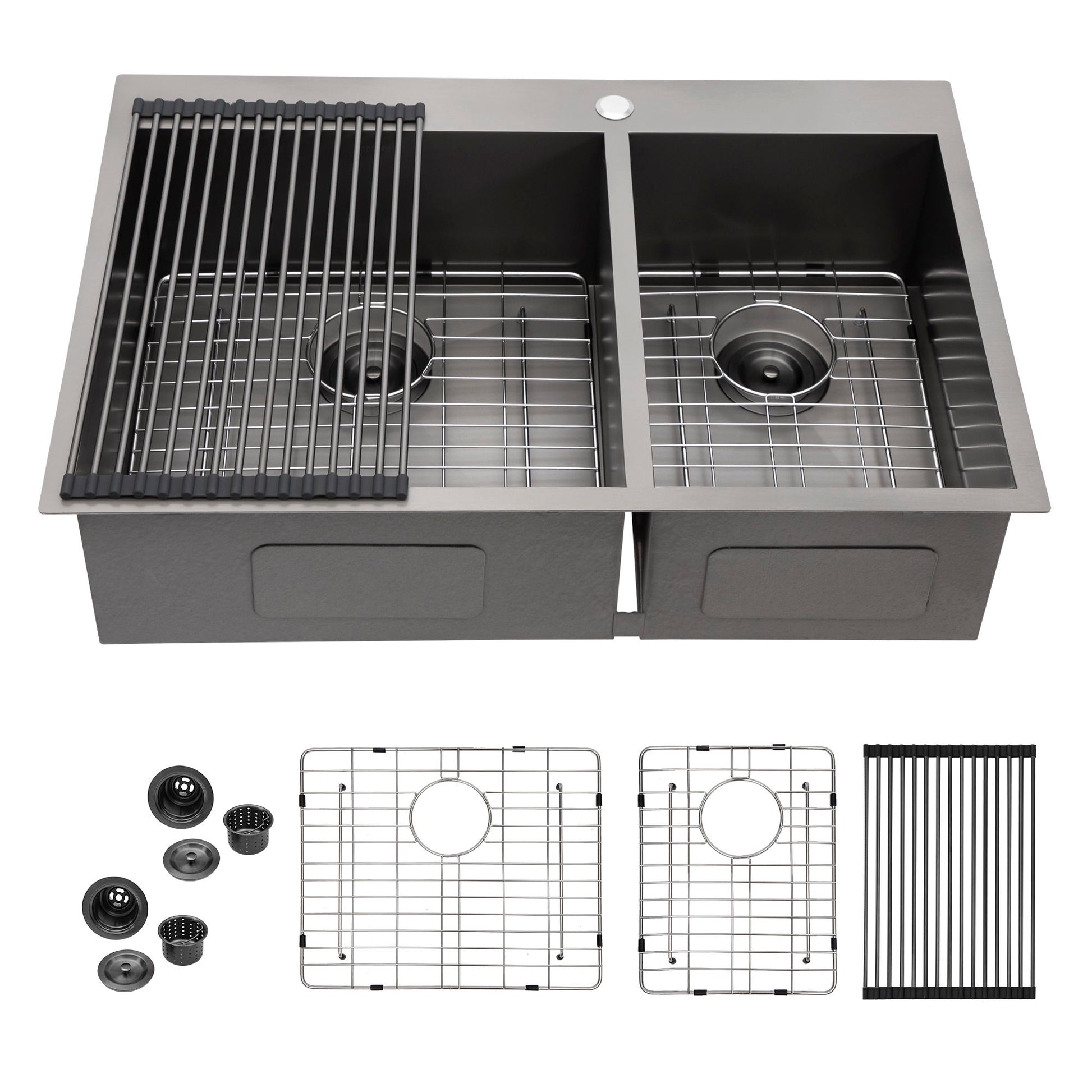Double Bowl Drop In Sink With 2 - 9" Deep Basins - Gunmetal Black33.0"W x 22.0"D x 9.0"H - 39.6 lb