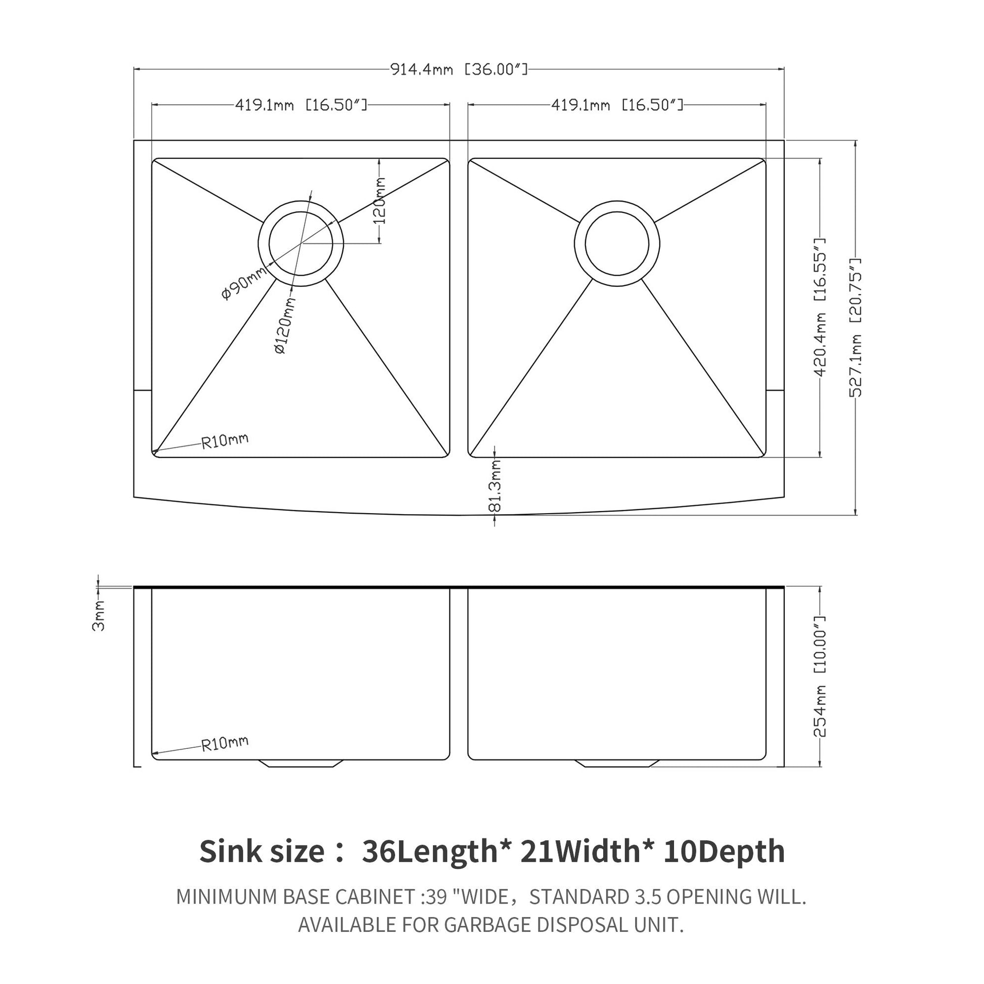 Double Bowl Sink Apron Front Kitchen Sink 16 Gauge & 2 Deep Basins - Gunmetal Black36.0"W x 21.0"D x 10.0"H - 49.83 lb