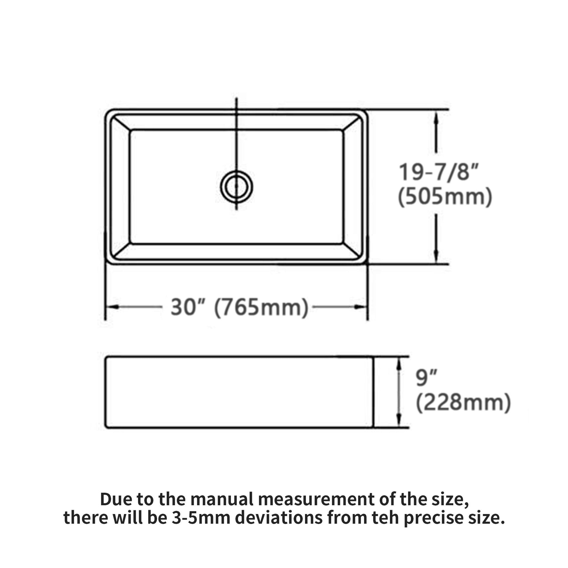 Elegant Ceramic 32" Undermount Single Bowl Kitchen Sink Dual Mount Deep Rectangular Basin - White32.0"W x 19.0"D x 10.0"H - 74.8 lb